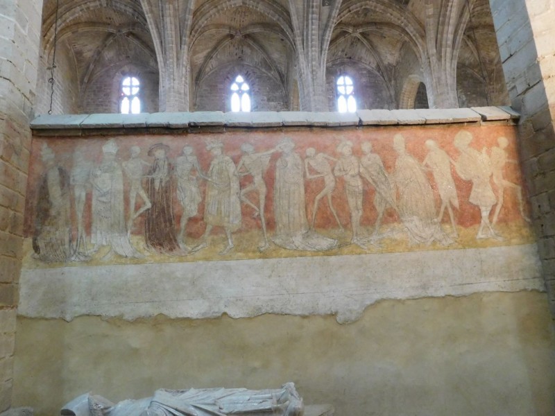 À l'intérieur de l'abbatiale se trouvent une fresque sur le thème de la danse macabre.
