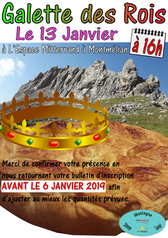 par mail à Suzie : avant le 6 Janvier 2019