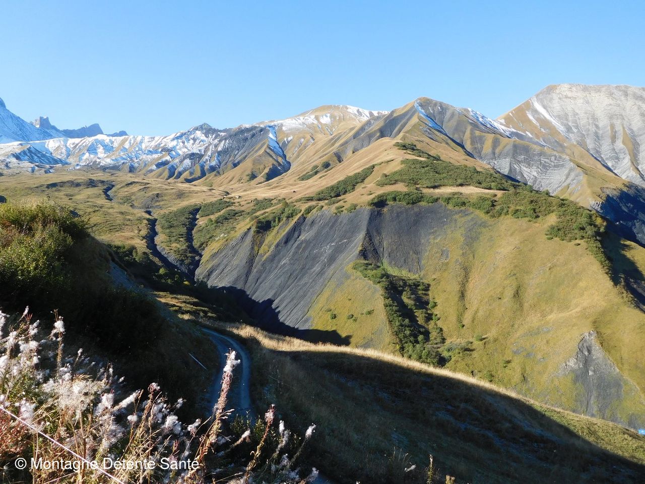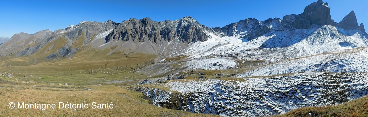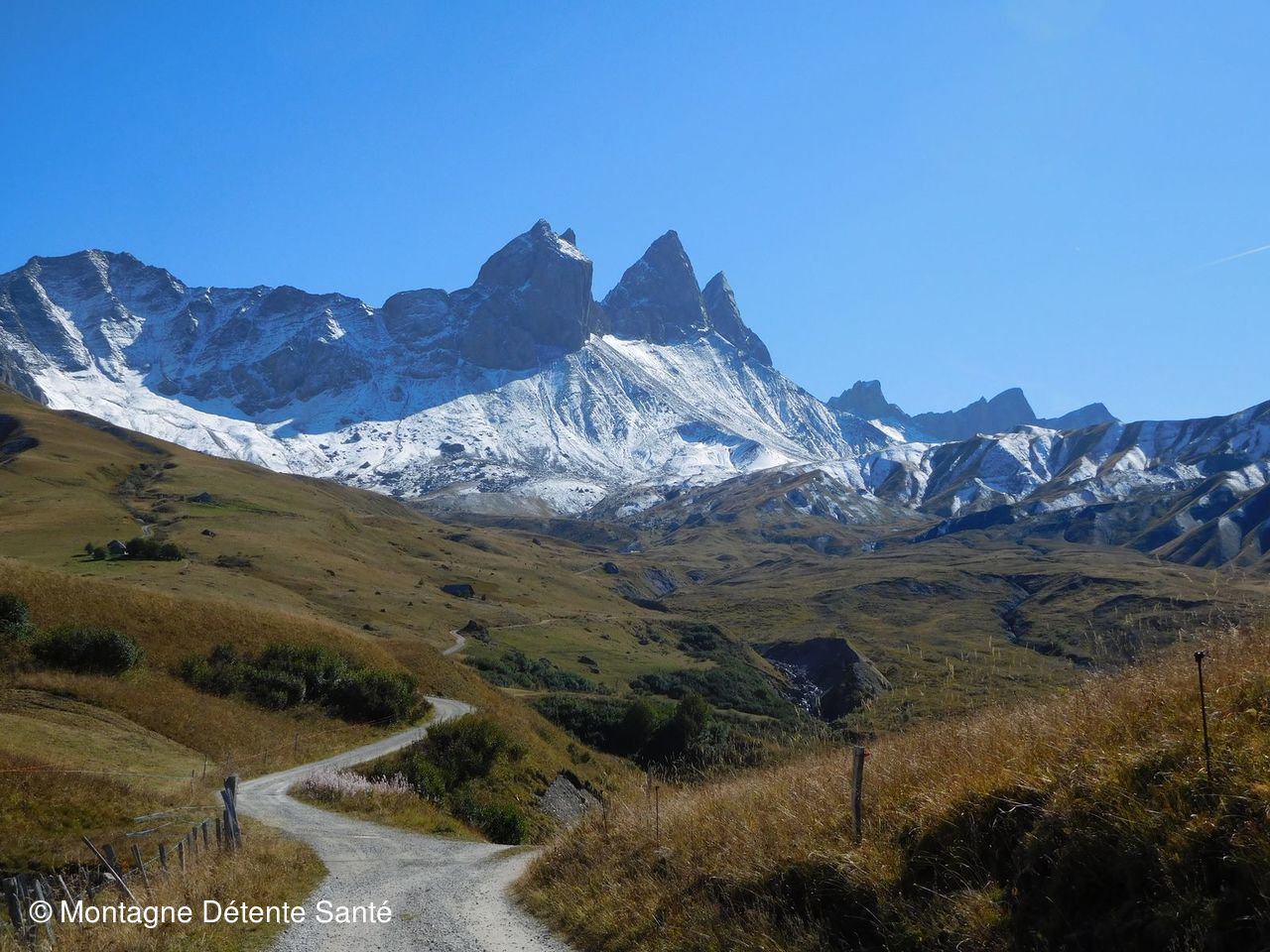 Randonnée de 12,3 km et 702 m de dénivelé qui nous a mené vraiment au pied des Aiguilles d’Arves.