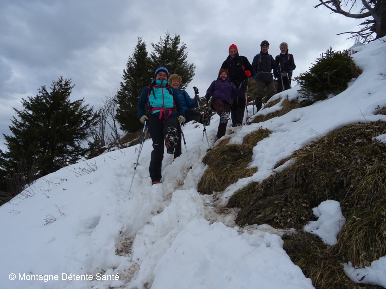 Ce Jeudi 23 novembre 2017,pas facile d’arriver au sommet de la Belle Etoile en Bauges avec le sentier enneigé, mais surtout très verglacé (heureusement nous avions les crampons).