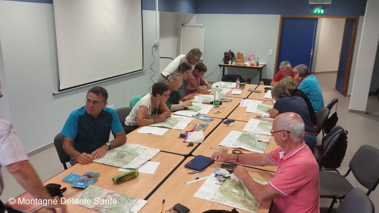 13 adhérents dont un formateur FFRandonnée et 3 animateurs de Montagne Détente Santé se sont réunis pour une journée d'enseignement lecture de carte.