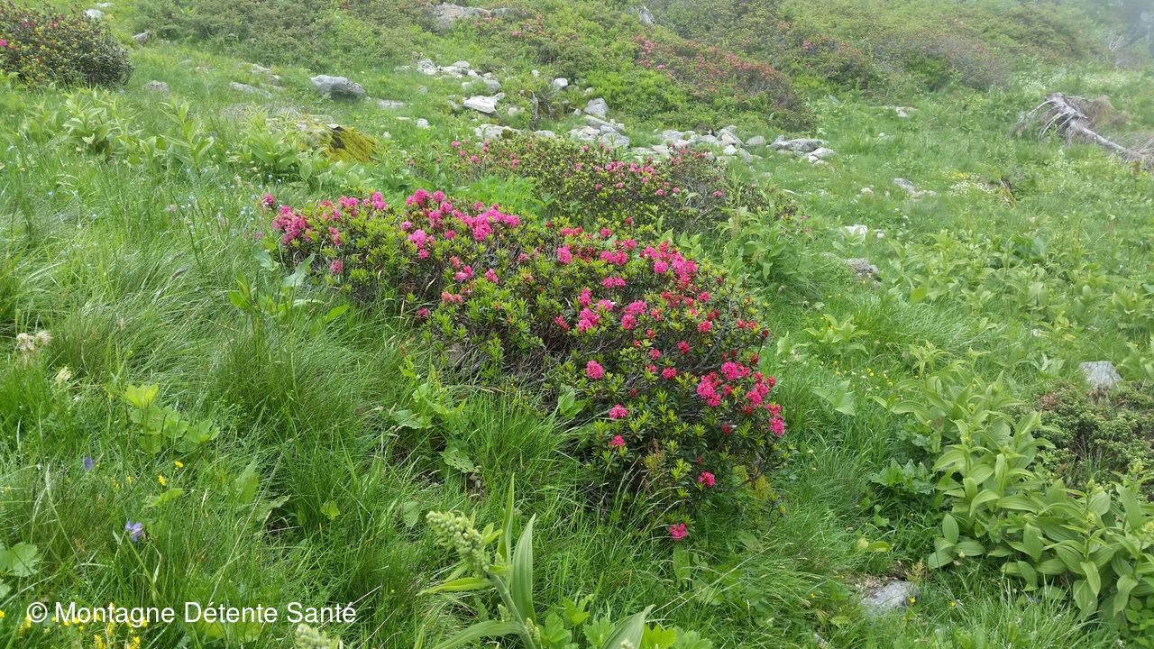 Une journée sans pluie avec des terrains bien humides… et les premières fleurs des rhododendrons.