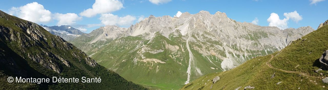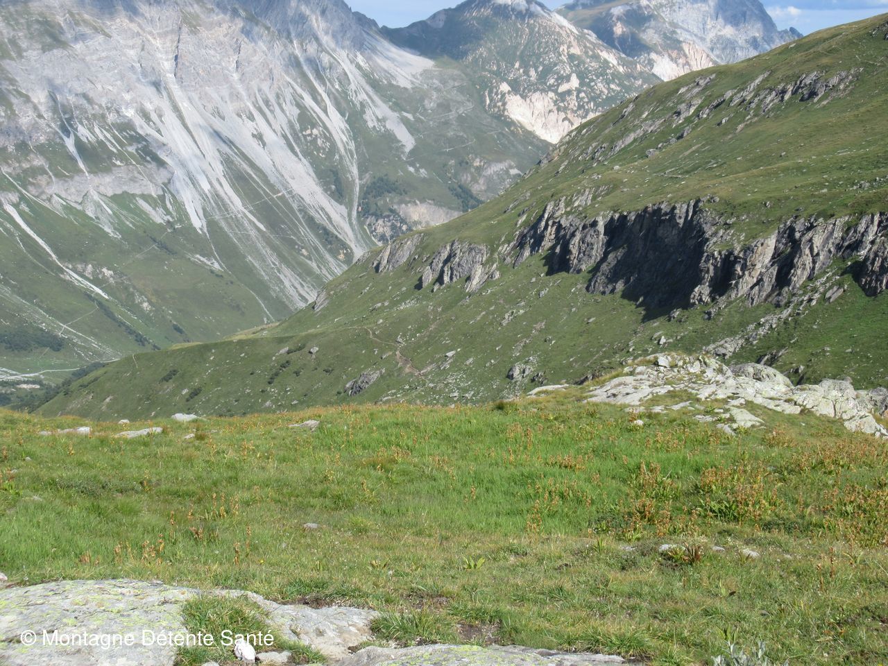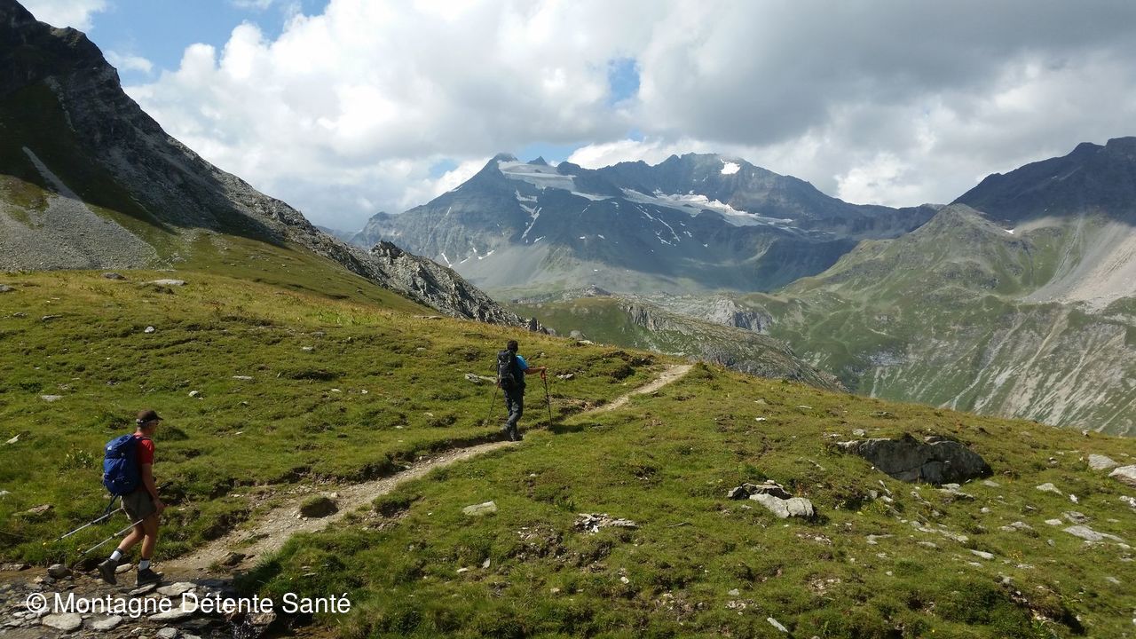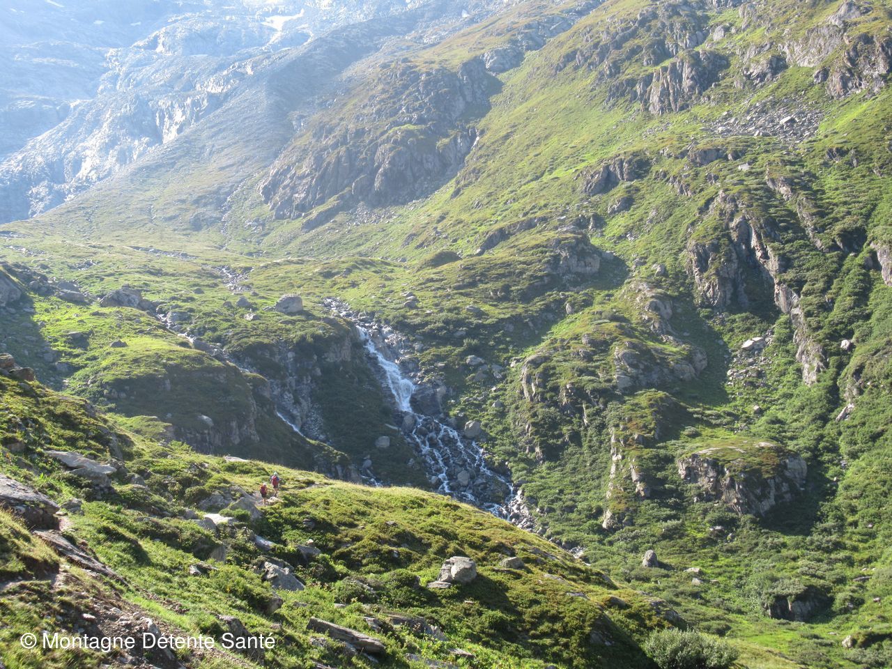 Du pont de la Pêche on longe un imposant torrent qui nous conduit au cirque du Genépi au pied des glaciers de la Vanoise qui nous paraissent bien loin.