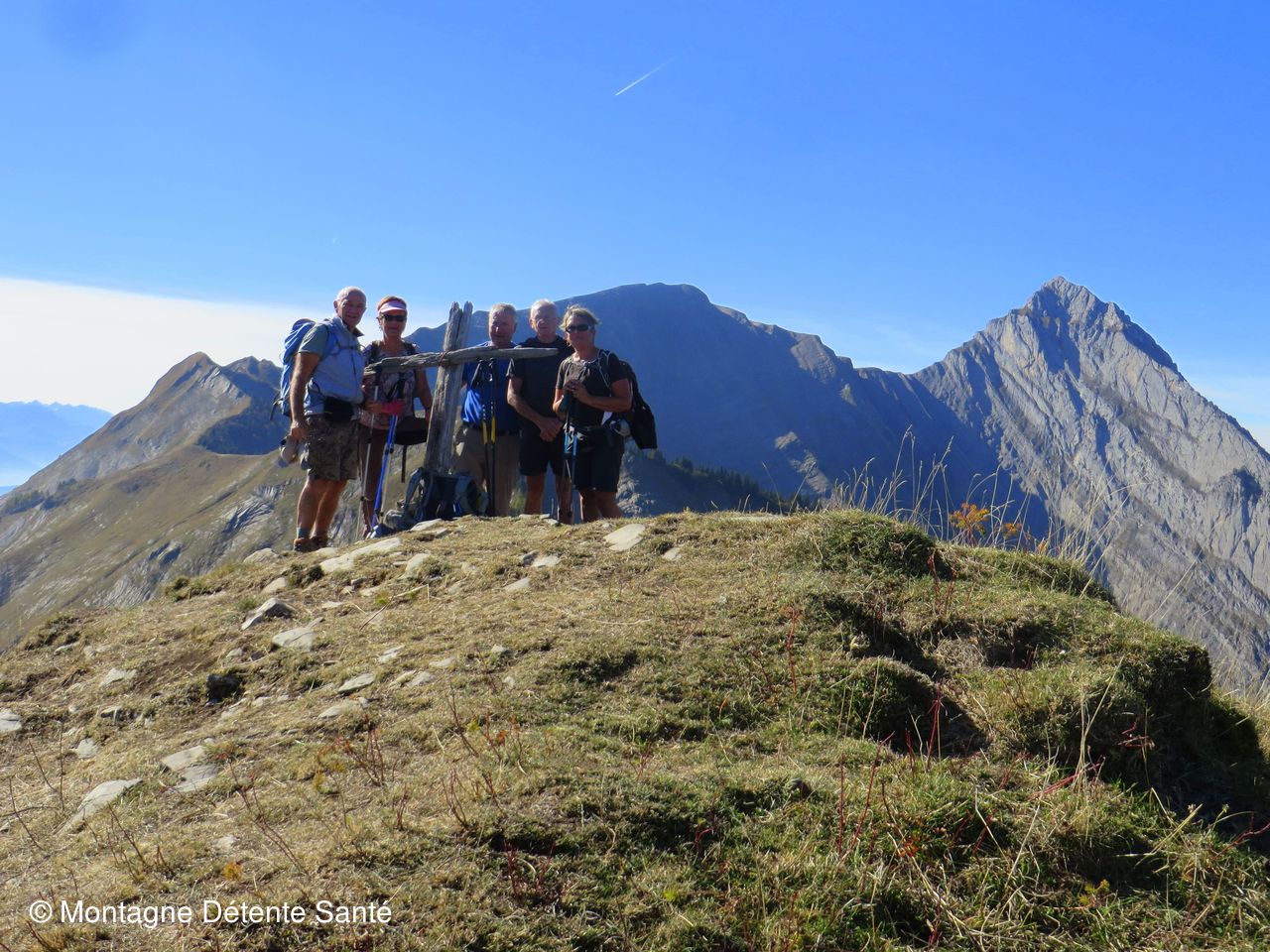 Le sommet est atteint avec une vue dégagée du Mont Blanc aux Ecrins d'un côté et de l'autre sur les sommets des Bauges.