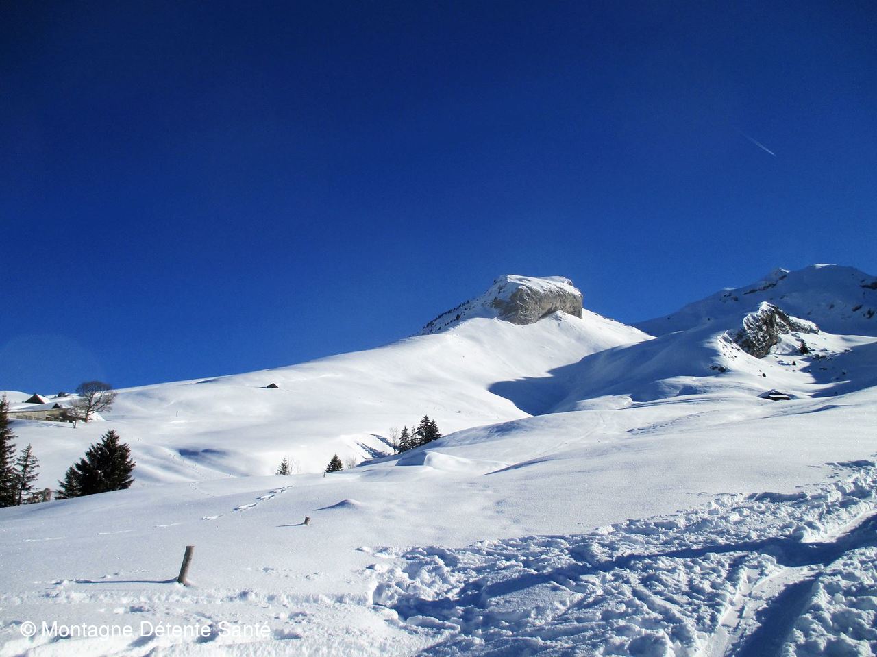 La neige étant encore tombée la veille, le départ s'est fait du hameau les Dzeures au lieu de celui de La Savatte, nous économisant un bon kilomètre dans 50 cm de poudreuse sans que la trace soit faite.