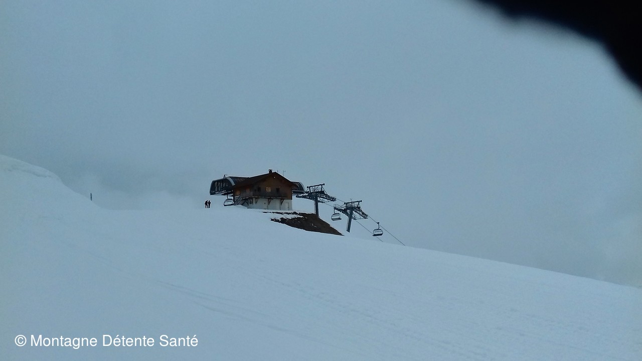 Vu le temps nuageux bouchant l'horizon et la vue sur le Mont Blanc, nous avons décidé de ne pas poursuivre jusqu'au sommet du Mont de Vorès. C'est donc au niveau de l'arrivée du télésiege de Belastat (à 2050 m) que nous avons fait demi-tour après avoir pique niqué.