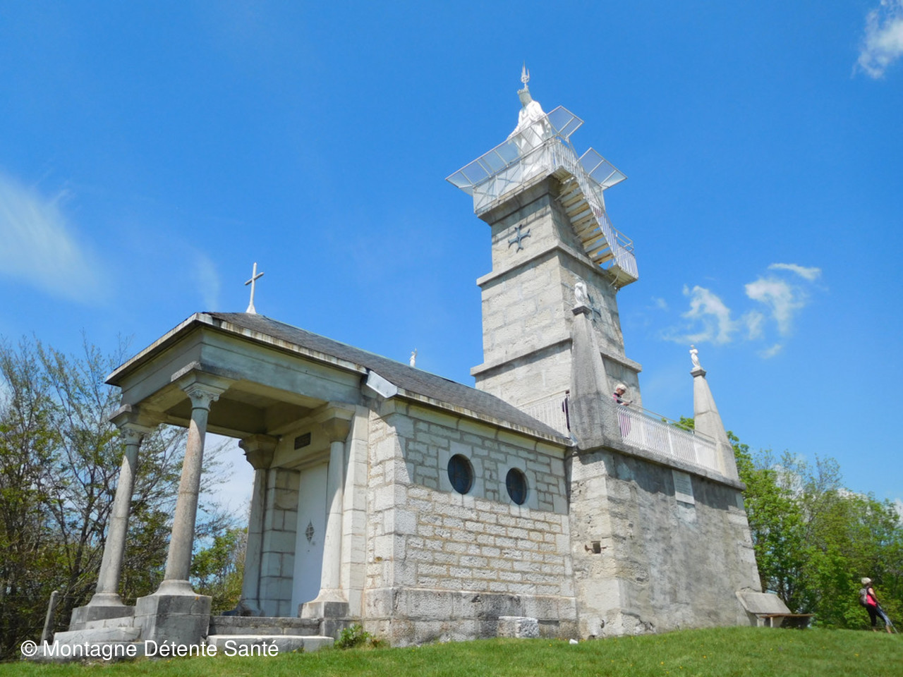 Partis de Miribel les Echelles, les randonneurs ont croisé un oratoire, une source, deux dolmens et une pierre à sacrifice avant une ascension, il le fallait bien, jusqu’à la Statue de Notre Dame du Château.