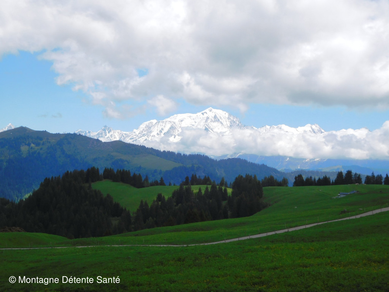 Vue magnifique sur le Mont Blanc qui a daigné sortir des nuages pour qu’on en profite un maximum après le repas.