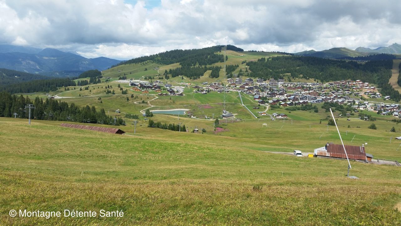 Départ depuis le parking en haut du télésiège des Carrets en raison des travaux de réaménagement des pistes puis les Chalets de Bisanne, Refuge et Croix de Varzéron, le lac des Saisies, la Croix de Coste, le Mont Bisanne et retour à la voiture.