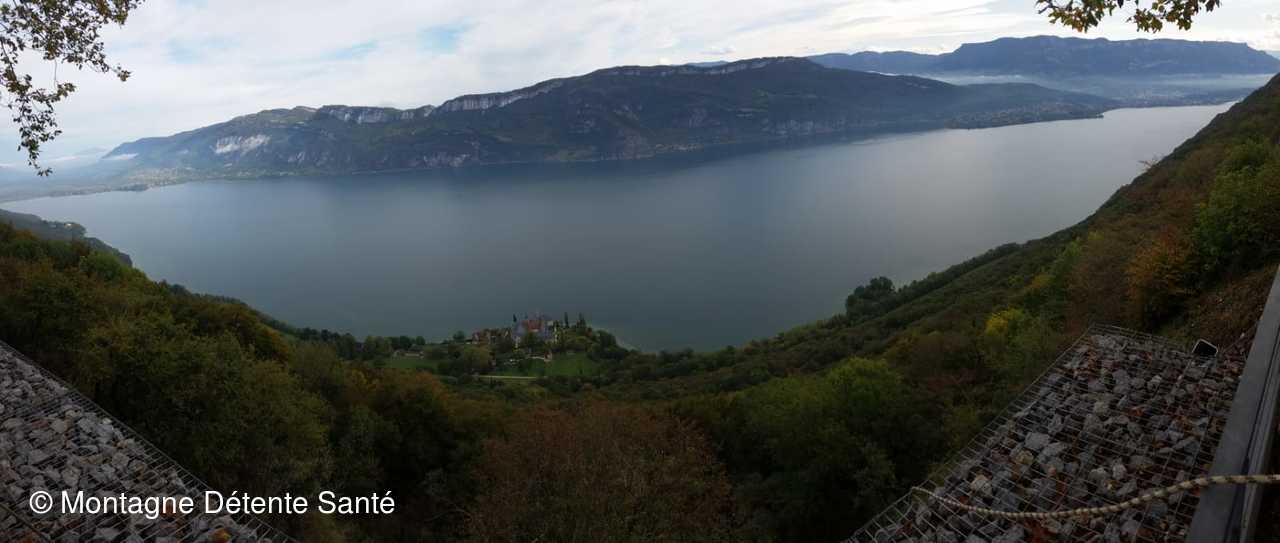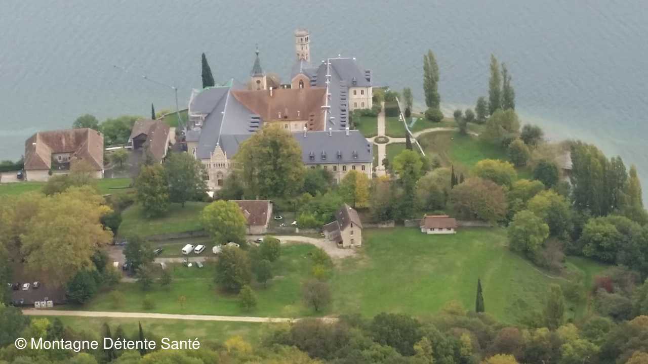 Sur la route de retour nous nous sommes attardés au point de vue d’Ontex surplombant l’Abbaye Royale de Hautecombe et le lac pour admirer le massif des Bauges.