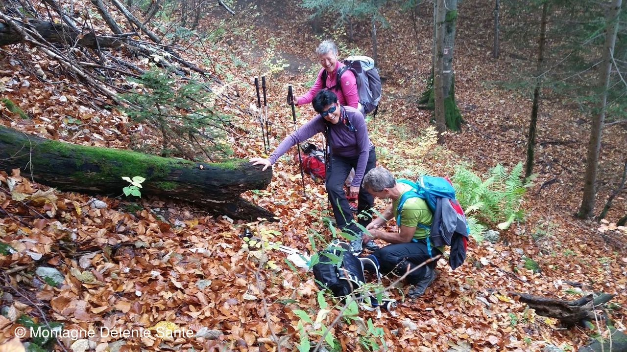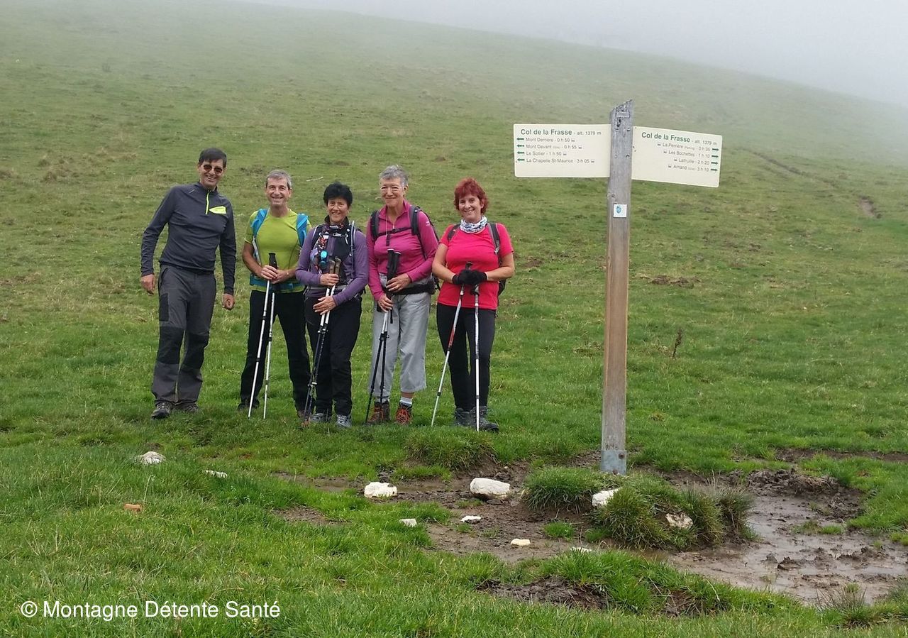 Les crampons nous ont bien servi dans la descente très glissante pour rejoindre le GR96 à Precheret, de là nous avons bifurqué pour monter au col de la Frasse (1378 m).