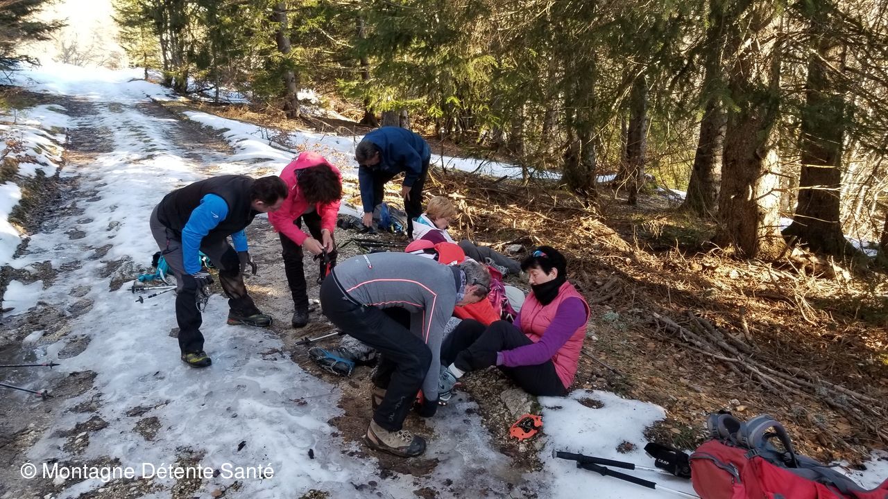 Pour certains l’utilisation des crampons était une première, mais sur la moitié du parcours ils ont encore été très utiles et sécurisant sur une neige dure et bien gelée.