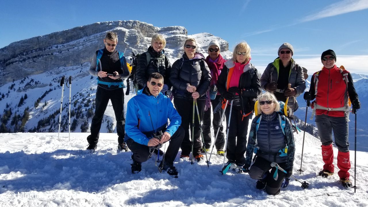 Un franc soleil avec un froid sec, un ciel limpide offrant une vue panoramique de Belledonne, du Vercors jusqu’au Jura,10 à 15 cm de neige fraîche, un groupe volontaire, avec en prime une trentaine de chamois dans la pente entre le Col-des-Ayes et la Dent-de-Crolle.
