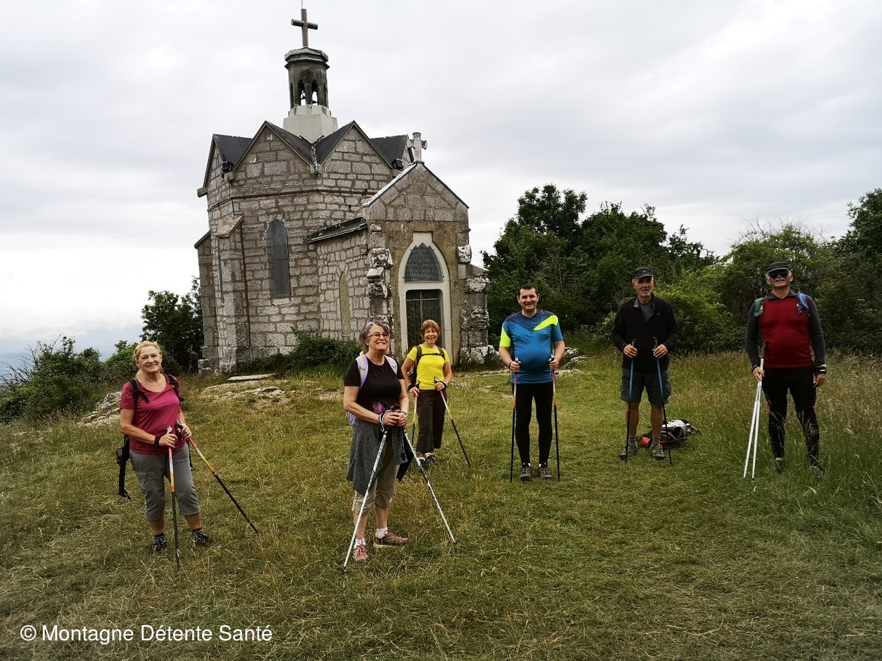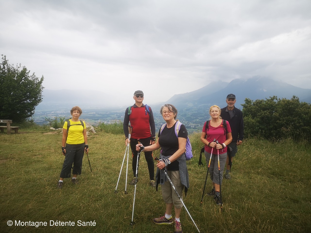 Arrivée au Mont petite pause le temps de la photo de groupe. Il pleut en combe de Savoie, sur le Grésivaudan et l'épine. Le ciel est bien nuageux sur les Bauges mais pas encore de pluie.