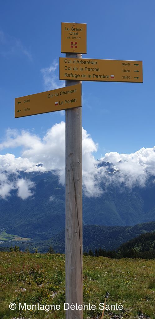 Direction le Grand chat, 2000 m d'altitude, où nous prenons notre pause déjeuner bien méritée, devant un vaste panorama sur les massifs de Belledonne et du Mont Blanc.