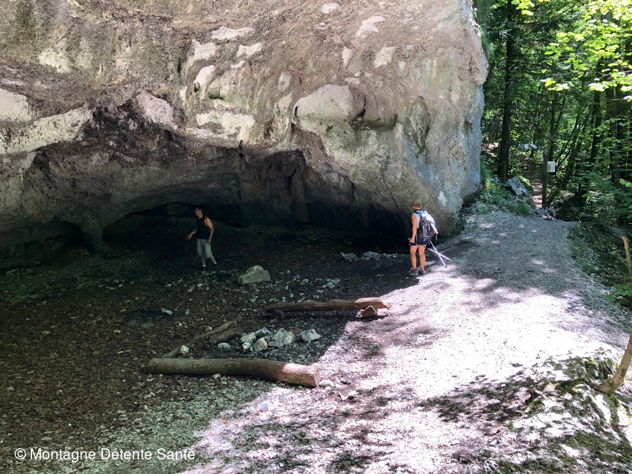 300 m avant d'atteindre le Col du Crucifix, poursuite par une variante en direction du Col St Michel par l'itinéraire de l'ancienne voie romaine, et au passage découverte de la grotte de François 1er qui en venant de Chambéry, surpris par un orage, aurait passé la nuit à l'abri en ce lieu en 1516.