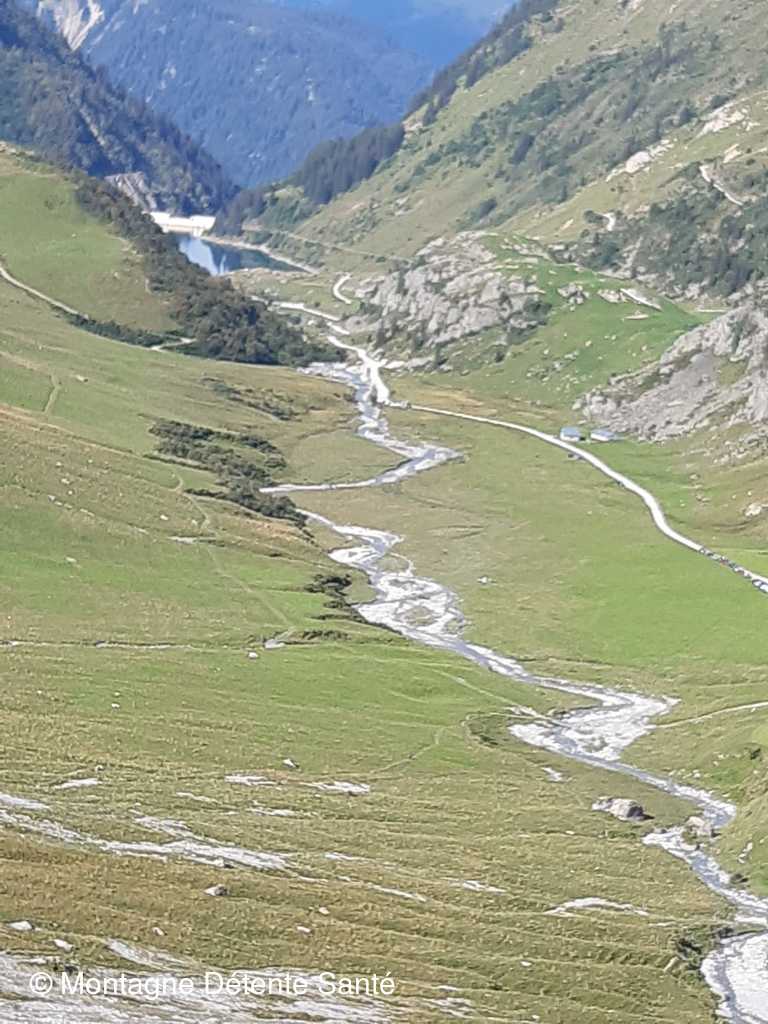 Et le coin est toujours aussi beau : les gorges, le chemin taillé dans la roche et le lac de la Gittaz, en contrebas.