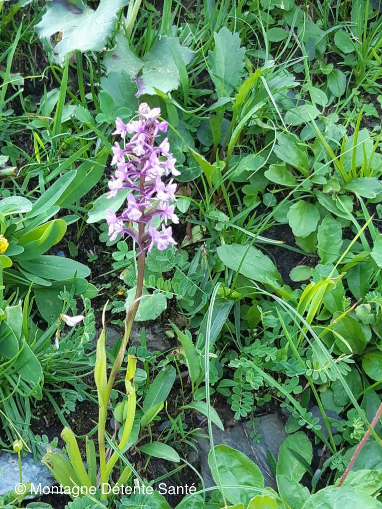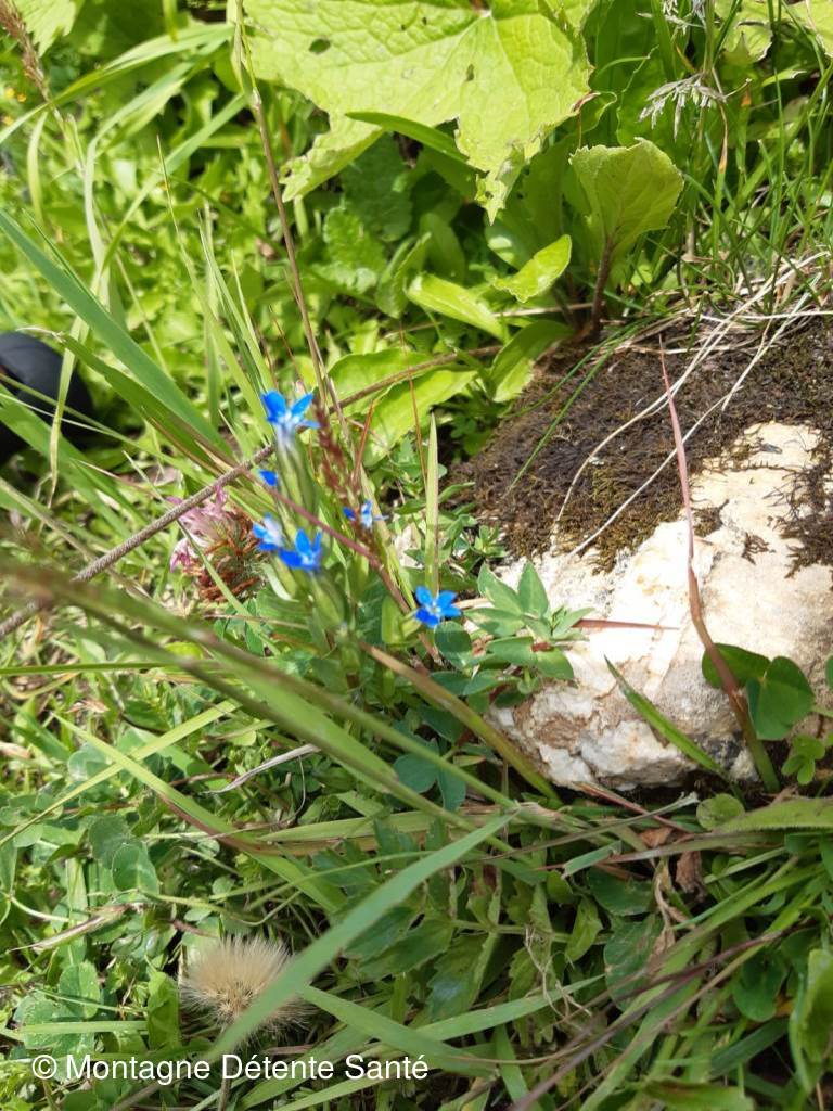 On avait plein de temps et on a essayé d’identifier quelques fleurs : gentiane champêtre, adénostyle, grande astrance, un magnifique papillon sur une centaurée scabieuse…, rochers des Enclaves tout près, Grand Mont au loin ?