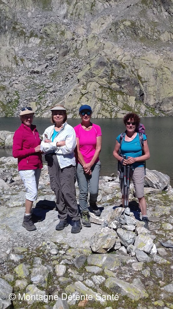 Départ du col du Glandon à travers les alpages et très vite à travers les pierriers le sentier longe le torrent du Glandon. A partir de la Combe de la Croix, le sentier devient de plus en plus caillouteux, un peu technique mais sans danger. Le dernier raidillon nous amène au lac de la Croix (2 415 m). Les plus téméraires poursuivent jusqu'au col de la Croix (2 529 m) (non prévu au programme de la journéee) tandis que les plus sages s'économisent pour la descente et nous attendent au bord du lac.