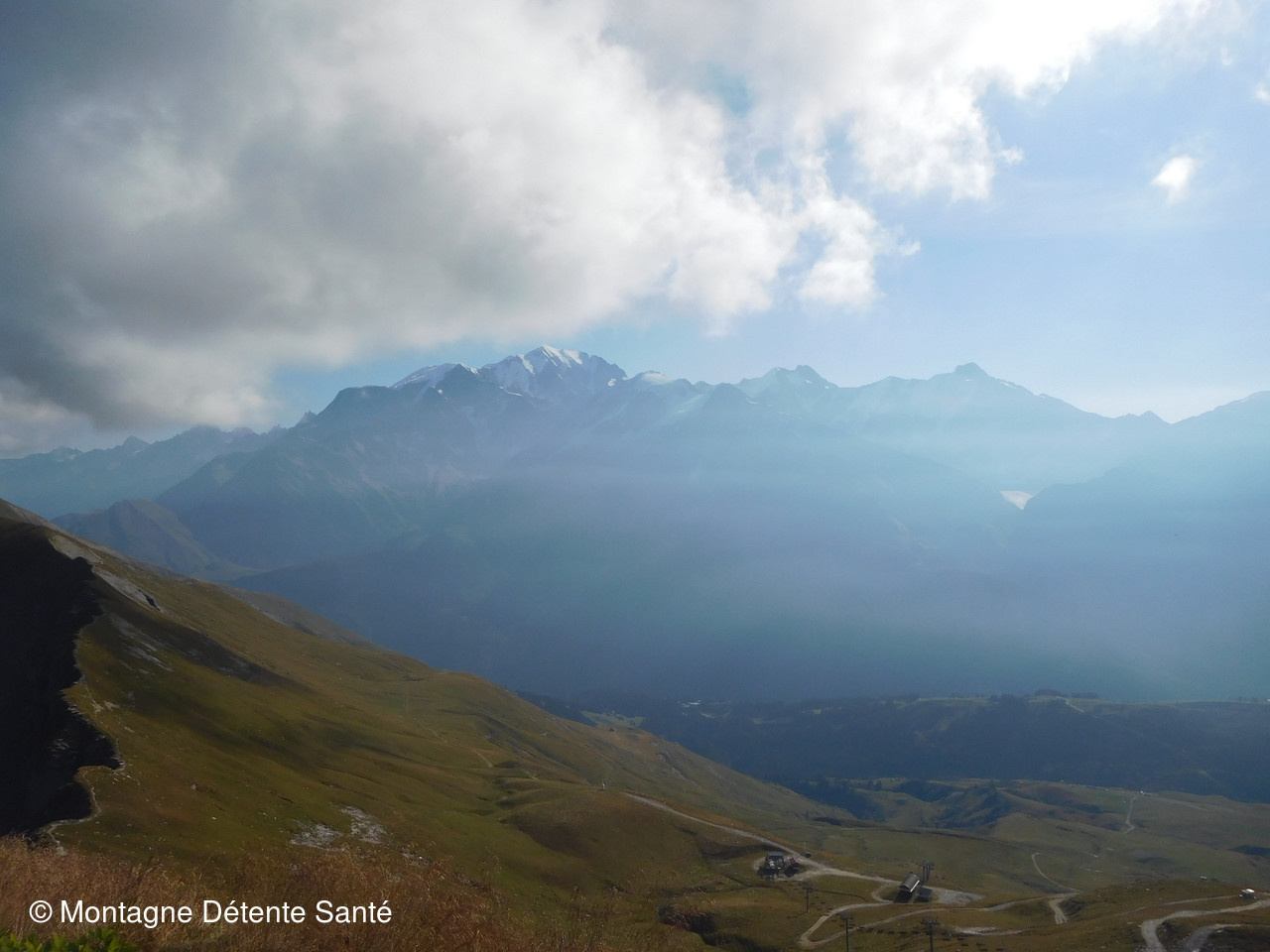Le Mont Blanc joue à cache cache avec les nuages mais on en a plein les yeux d’un bout à l’autre de cette traversée aérienne à 2400m d’altitude en moyenne.