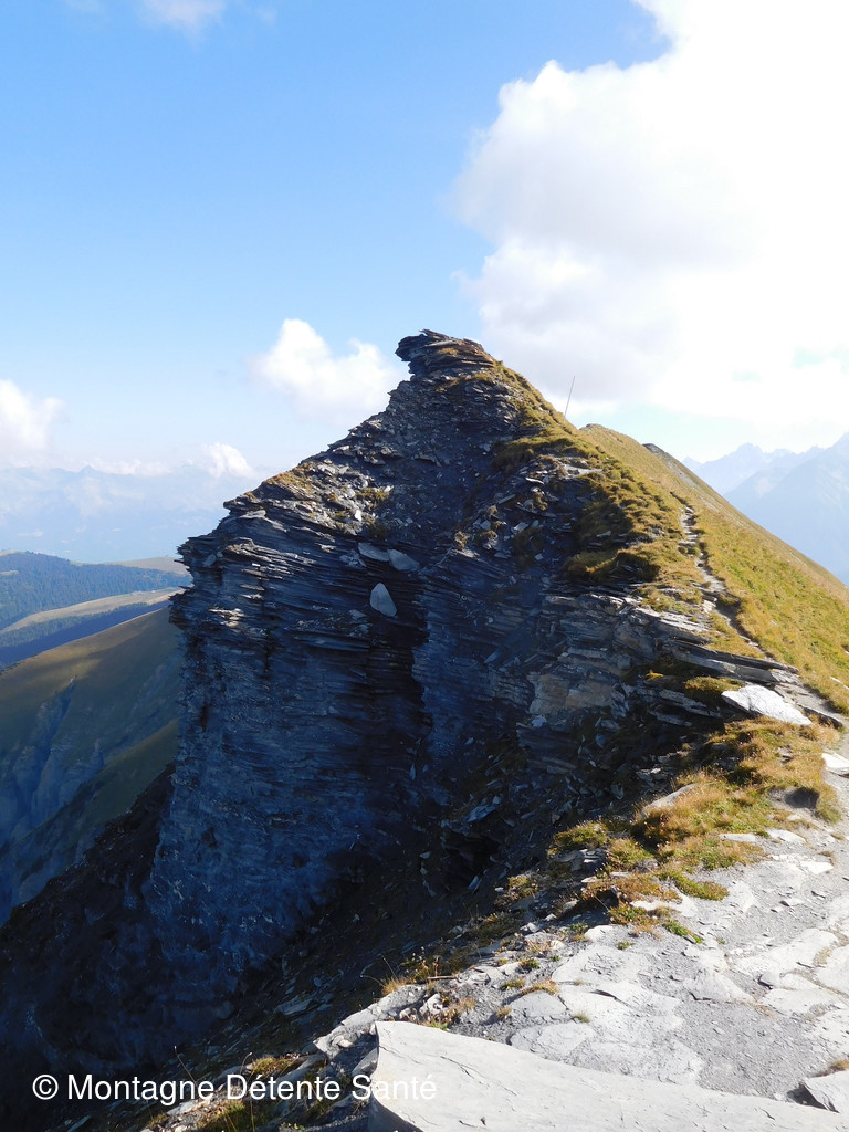 Du coup une montée régulière sans à coup en un peu plus d’une heure. La crête est impressionnante au début mais sans jamais être dangereuse.