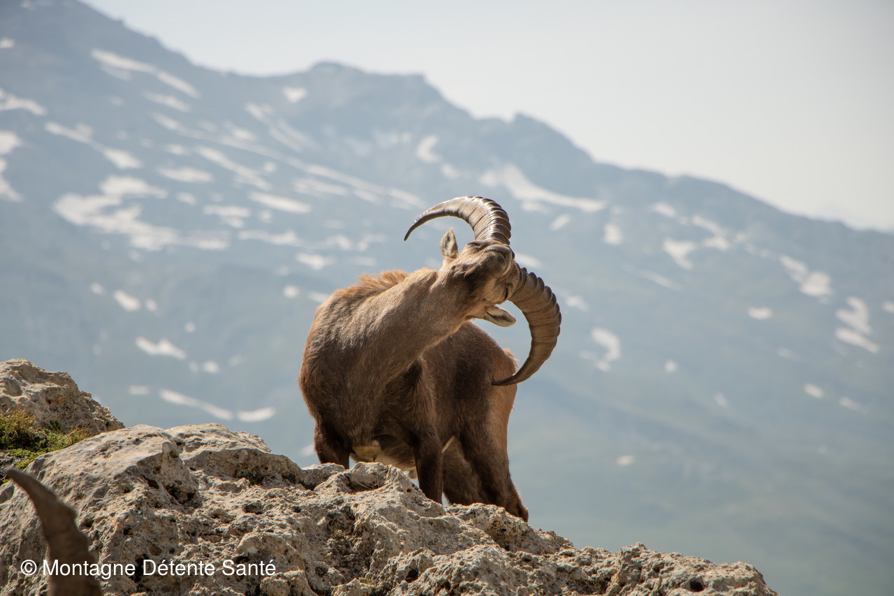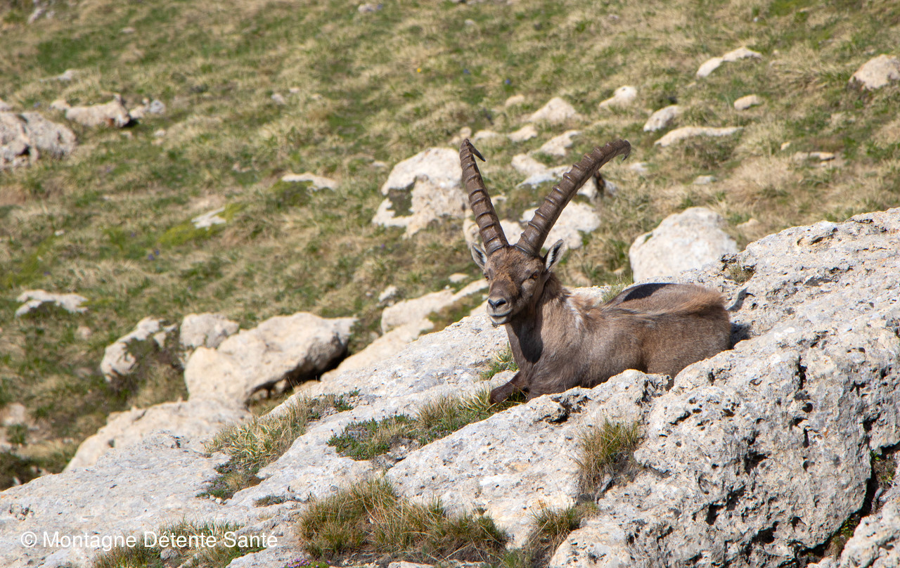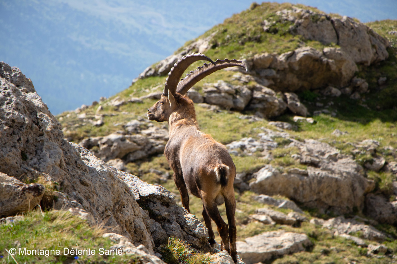 Avant qu’il n’y ait trop de randonneurs, nous allons voir les bouquetins du Grand Perron des Encombres en ce tout début juillet.