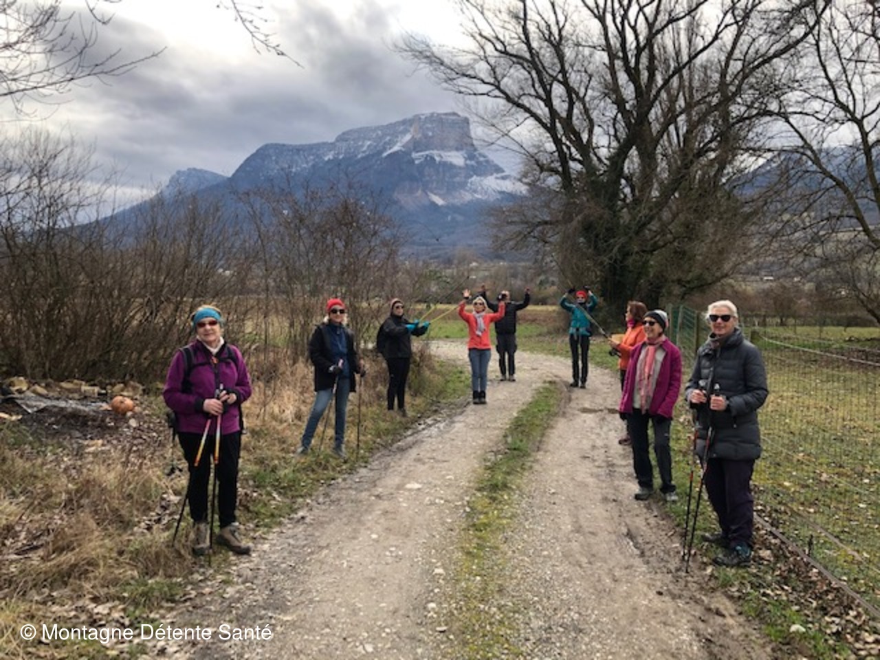 Après une traversée rapide de l'Eglise de Myans en admirant la Vierge Noire, exposée dans la crypte, les peintures murales des saints savoyards et les milliers d'ex-voto exposés et nous terminons notre balade par les exercices d'étirements avec l'aide des platanes du parking voisin.