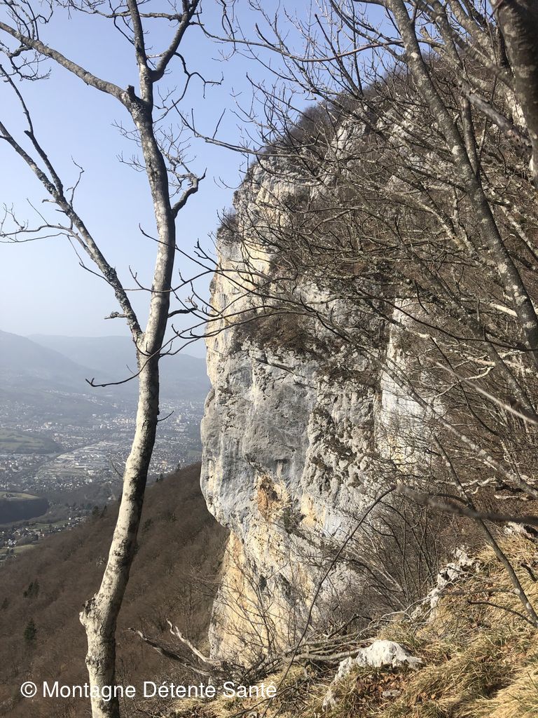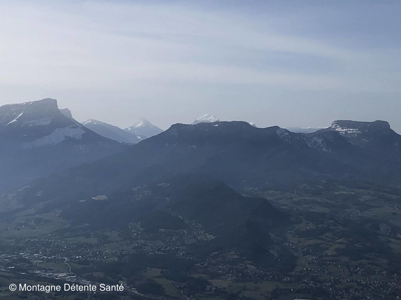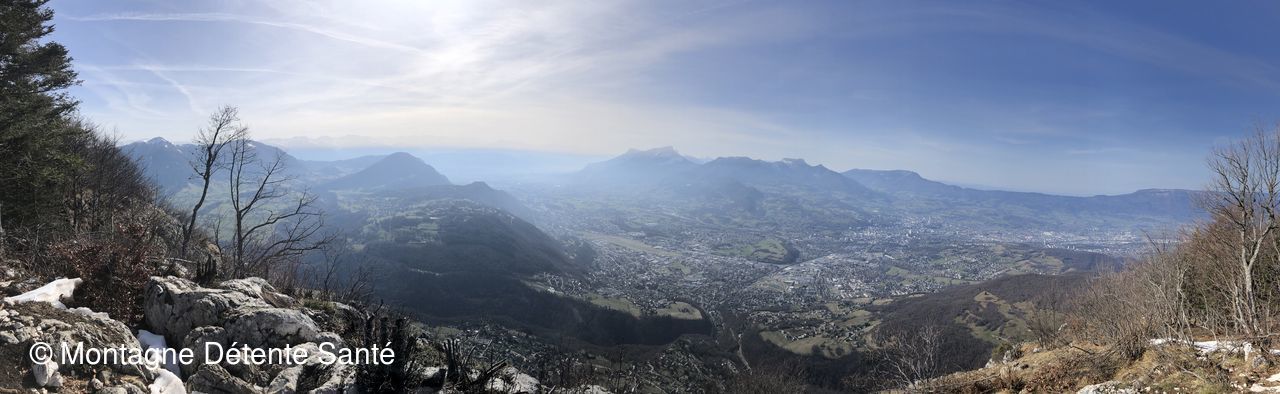 En quelques jours, la neige a pratiquement disparu des versants sud. Montée tranquille jusqu'aux premières crêtes. Dommage que le soleil voilé et le ciel encombré ne nous aient pas permis d'observer les massifs de Belledonne et la Chartreuse. Pause pique-nique au mont Peney.