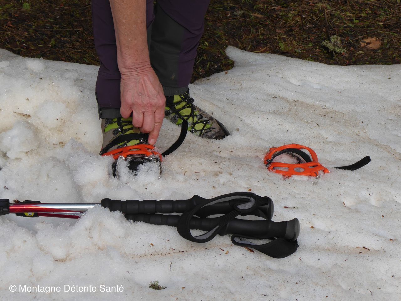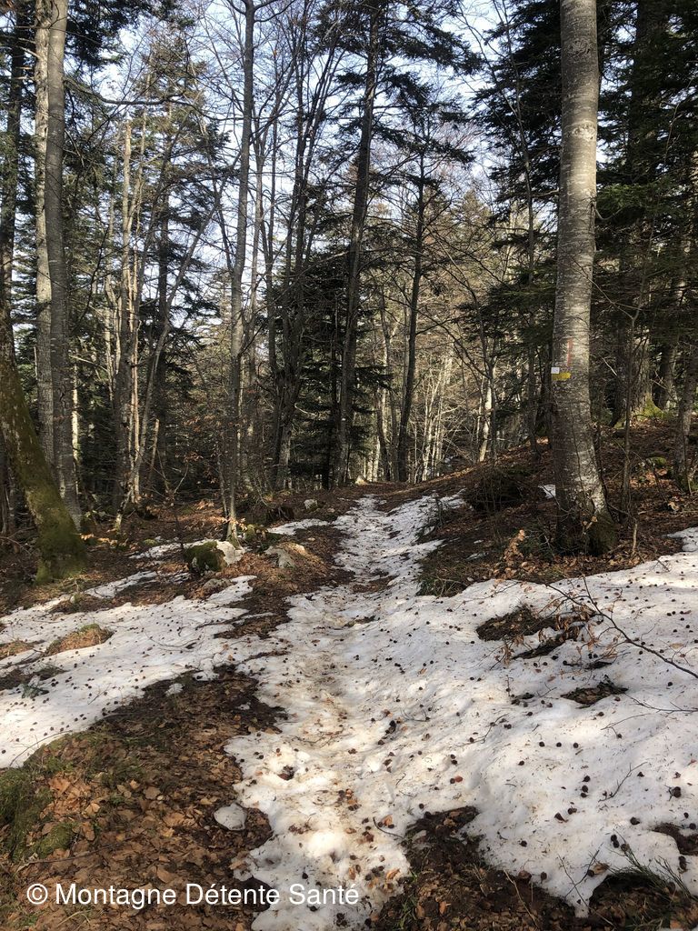 Ensuite ... crampons nécessaires pour amorcer la descente qui se fera entièrement à l'ombre en forêt jusqu'au parking.