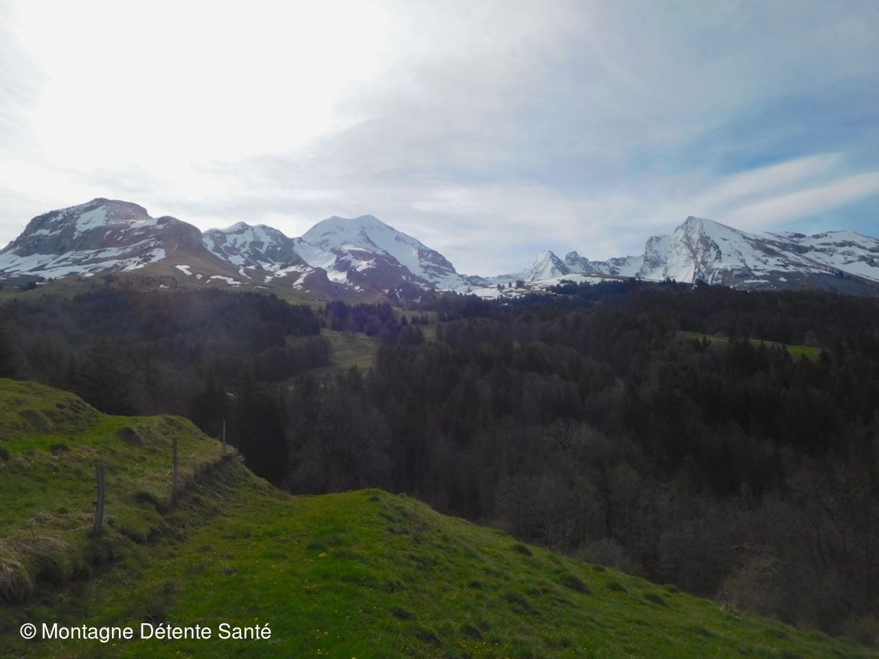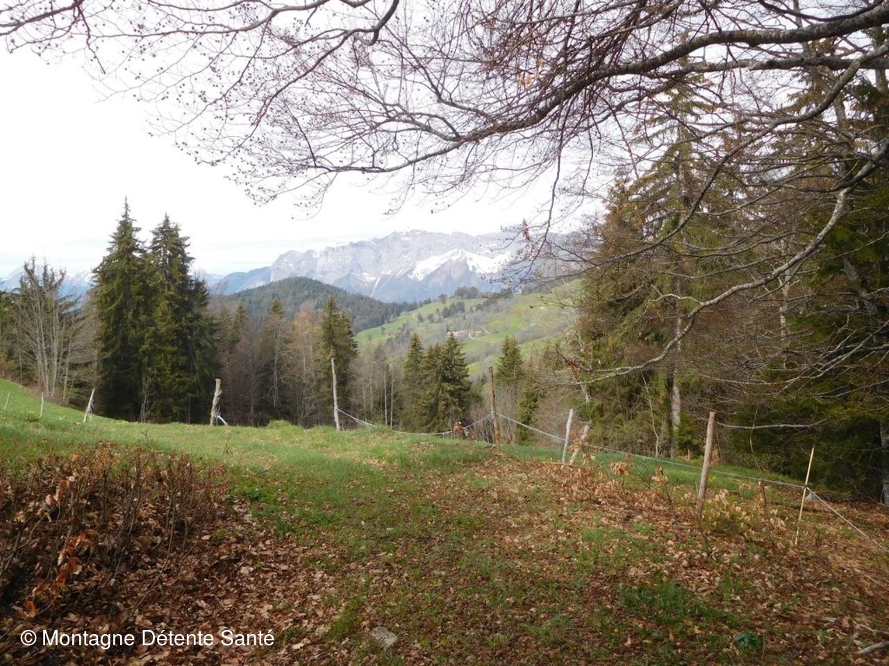 Belle reprise dans des paysages très ouverts bordés par la Tournette, le Charvin, la Madallaz, le Merdassier, entre autre et avec une vue vers les Bauges et Belledonne là bas au fond.