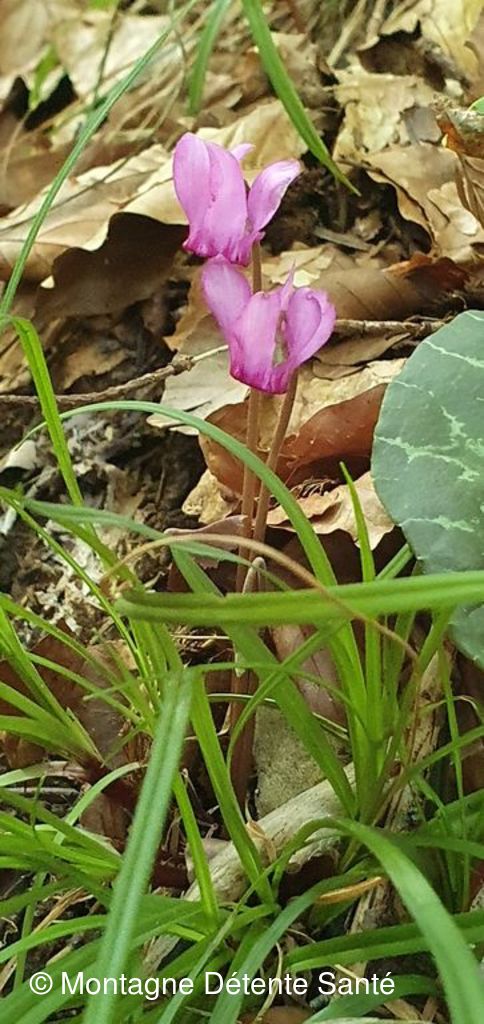 Cheminement facile sur le beau sentier dit de découverte : cyclamens sauvages, belles vues sur Le Chatelard, les sommets des Bauges et les plans d’eau.