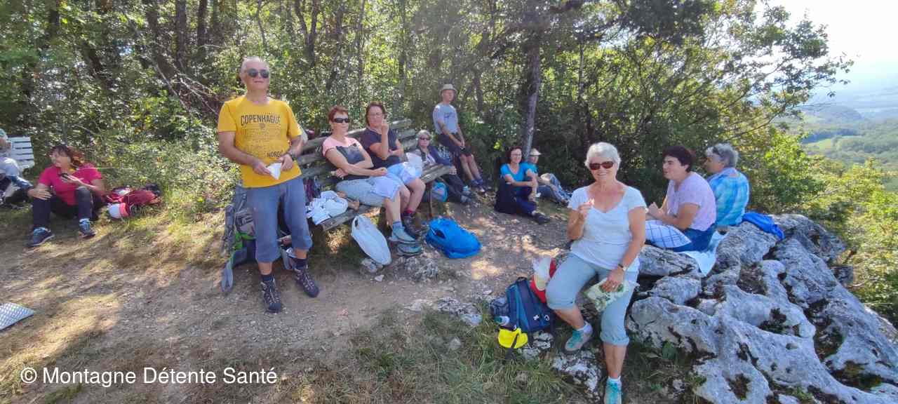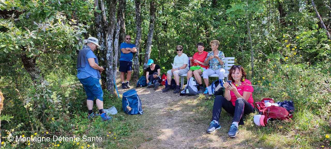 Démarrant par la « Montée du Paradis » le programme était annoncé… nous avons traversé le hameau du Mollard, passé sous le château de Pomboz où un chemin ombragé en forêt nous a conduit au point de vue du Landard pour casser la croûte.