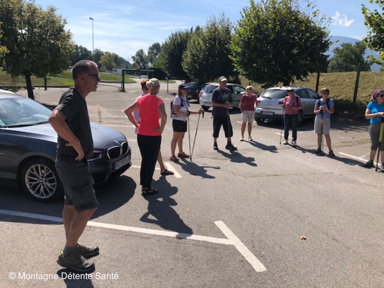 Sous un soleil de plomb, dès le départ du parking du stade, nous enchaînons les échauffements tout en marchant pour les terminer à l'ombre d'un noyer.