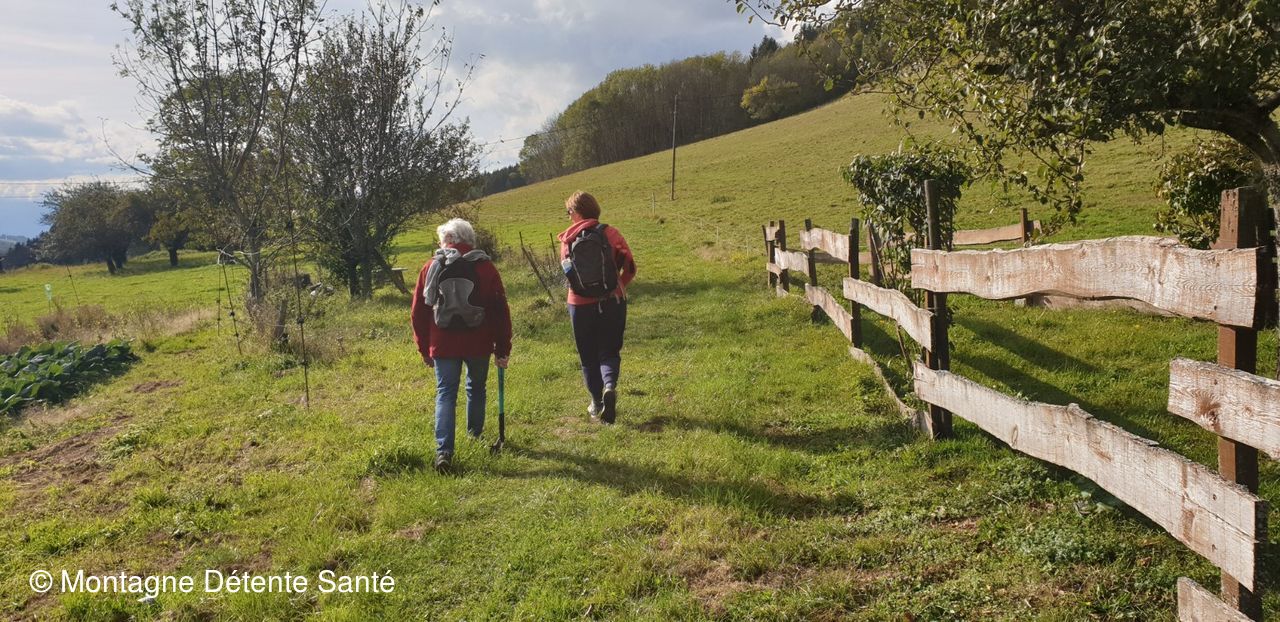 Traversée d'une prairie et petite forêt et retour au parking où chacun se félicite de la découverte de cette randonnée.