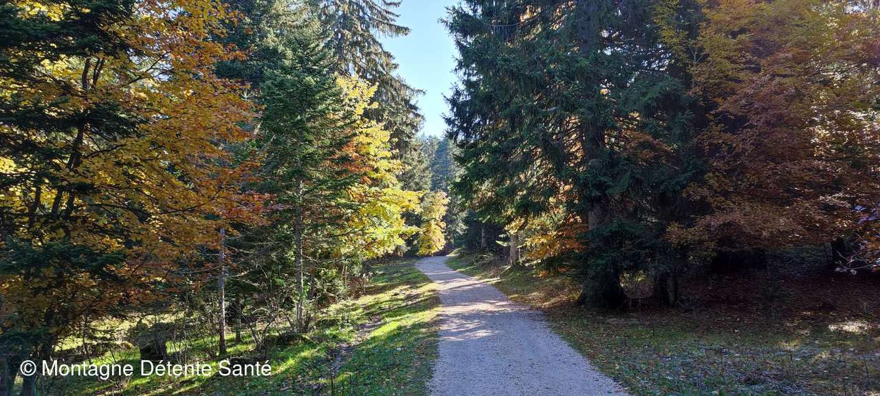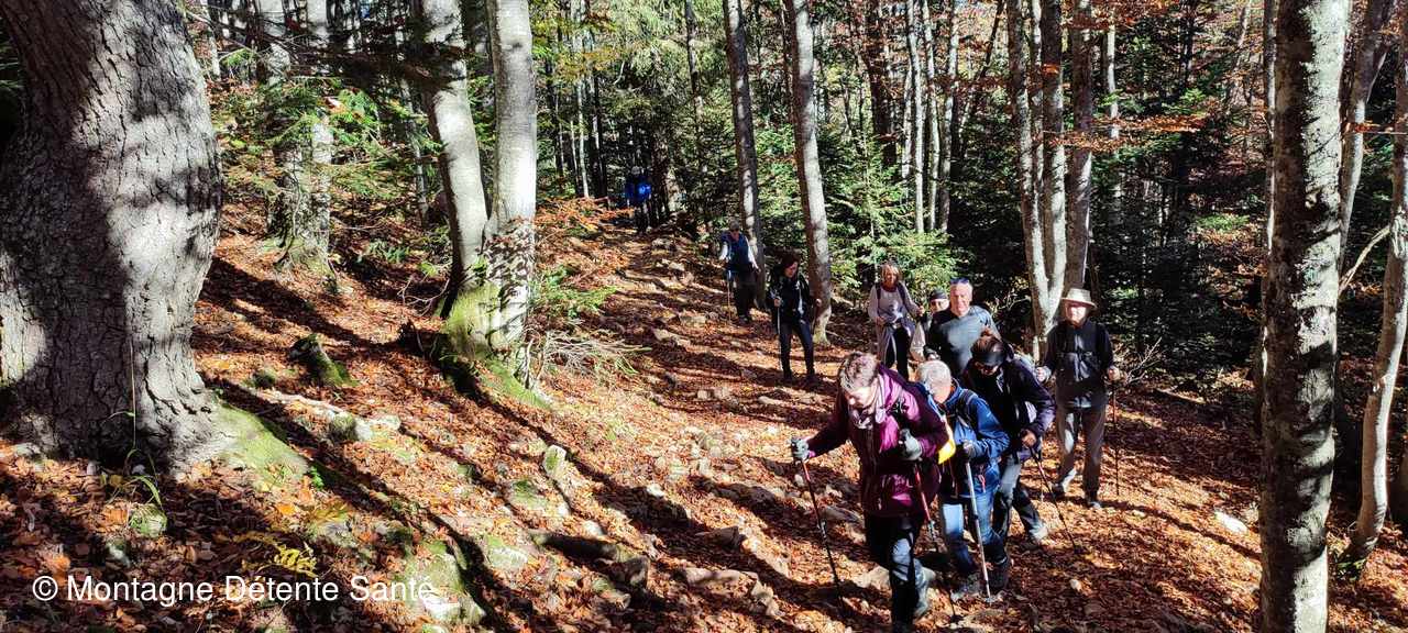 Il fallait rester vigilant tout le long du parcours depuis le chalet du Sire jusqu'à la croix, car de nombreuses feuilles fraichement tombées rendaient le terrain piégeux.