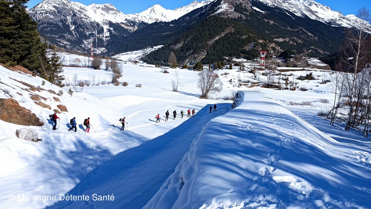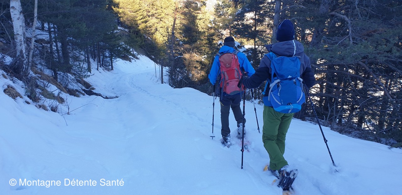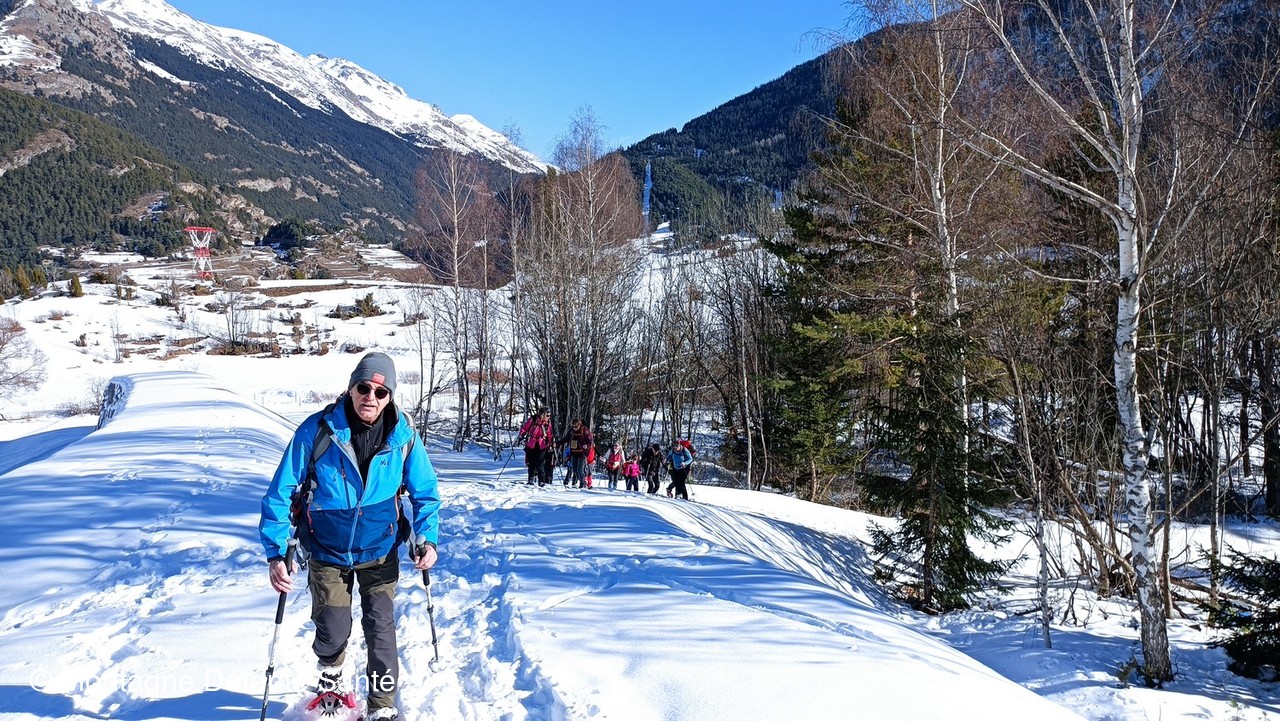 Direction le "Laisser-Aller" une belle poudreuse nous oblige à chausser nos raquettes.