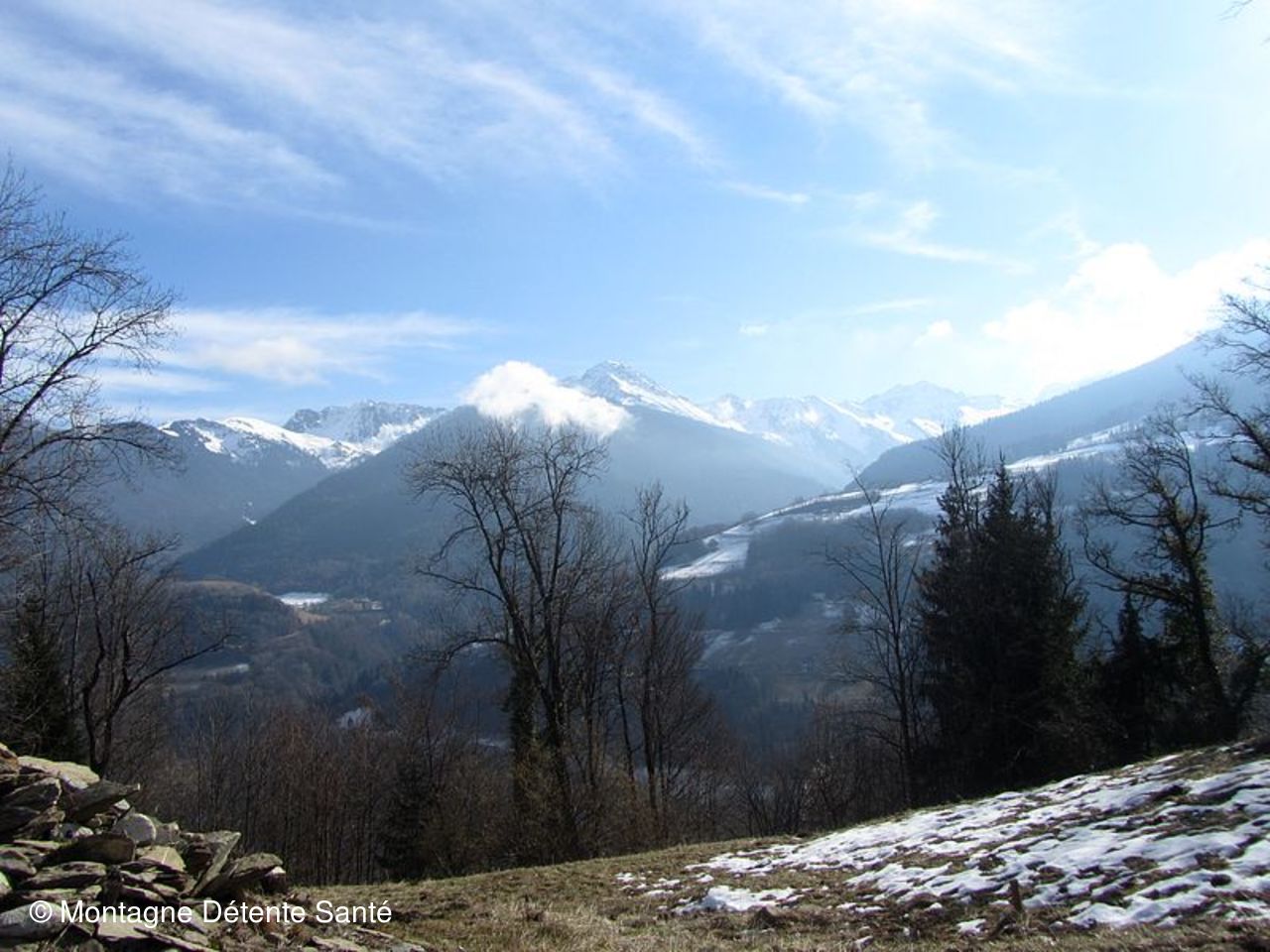 Vues sympas sur les Belledonnes, Grands Moulins et Grand Rocher, et sur le Bassin de Flumet quand le soleil l’éclaire.