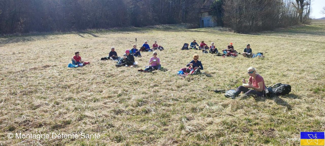 Nous avons cassé la croûte au sud de Parves avant de jouer au sanglier sur une centaine de mètres à travers la végétation pour récupérer une sente et revenir sur le hameau de Poisson et Chemillieu.