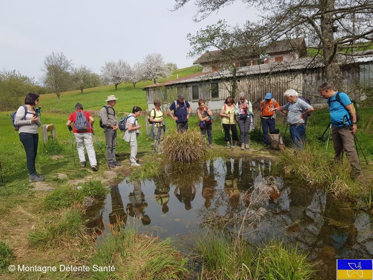 Au moulin de Crosagny, au bord de la mare, Marius nous a tout raconté de la vie intime des grenouilles et des libellules, passionnant ! Poursuite de la ballade vers la forêt des Grandes Reisses et retour au parking par le dépôt pétrolier et le lac de la Bottière.