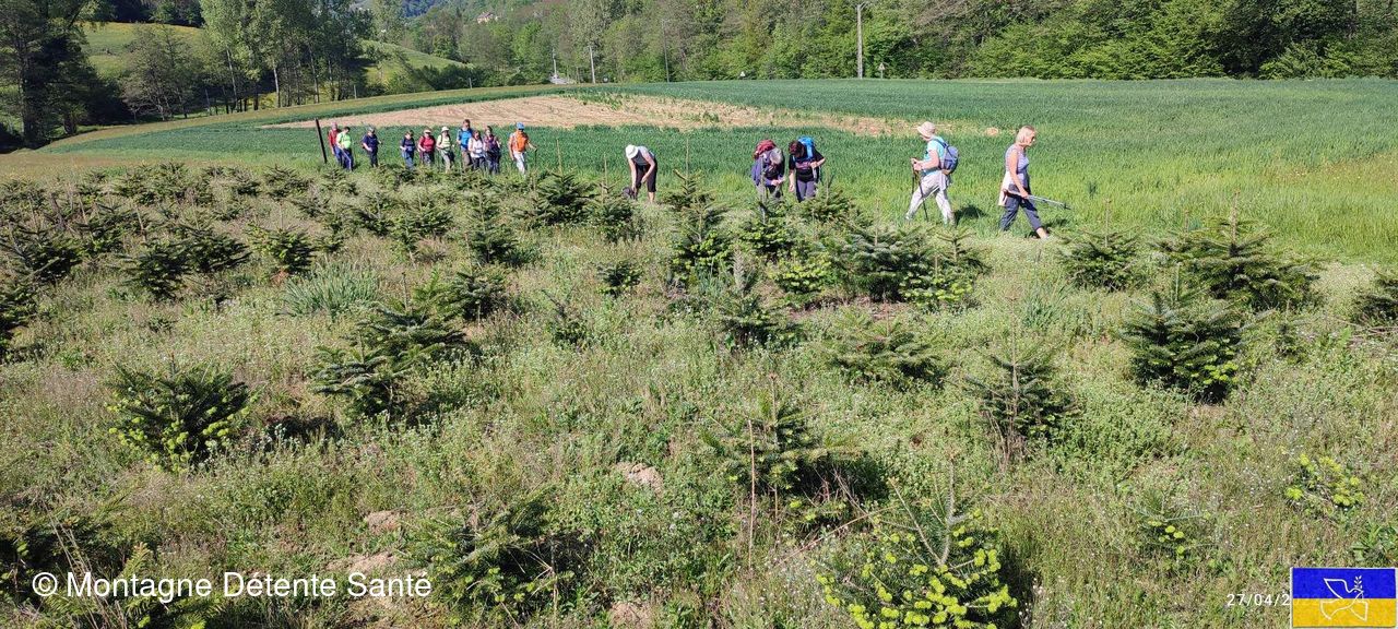 Après un départ en ville par une petite route, celle-ci a vite fait place à une piste au milieu des champs et des cultures. Ensuite, c’est par des chemins en sous-bois et un sentier à travers des parcs et des pépinières de sapins que nous avons bouclé notre sortie pour revenir aux voitures.