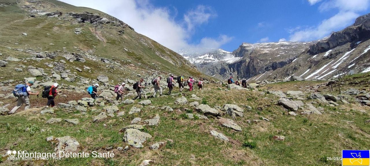 Départ depuis le hameau du Bois, puis nous empruntons le sentier le long du Doron de Champagny, traversons Friburge jusqu'à Laisonnay d'en Haut. Avant le gros raidillon, petite pause en observant la très belle cascade du Py. Ensuite, la belle montée parallèle à la cascade et arrivés en haut, notre premier bouquetin, mais plus nous avançons, plus nous en découvrons, le gros du troupeau se situant après le couloir du Mollard. Quelques névés à traverser et nous arrivons au refuge de Plaisance pour notre pique-nique, vue sur le Grand bec, la pointe des Volnets, et à notre gauche, la pointe de la Vaillaisonnay qui est restée dans les nuages.