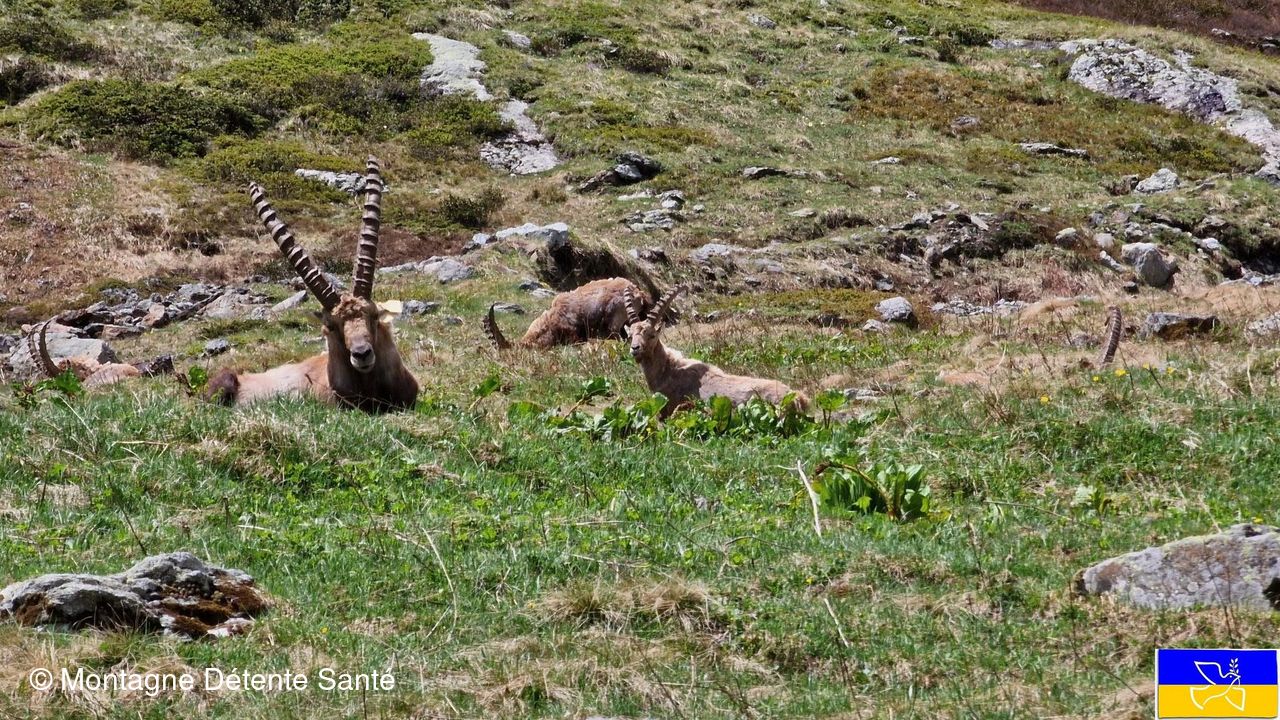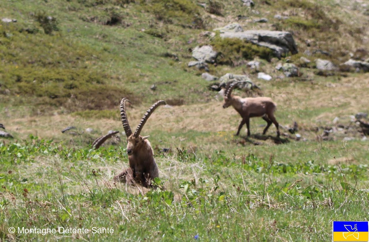 Il faut bien redescendre ! Un dernier regard sur les bouquetins avant de reprendre le chemin inverse jusqu'aux voitures. Beaucoup de fleurs tant sur la rive du Doron qu'en allant au refuge. Encore très bien belle journée en montagne sous le signe de la bonne humeur.
