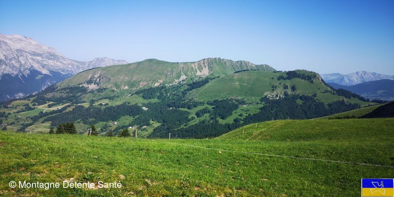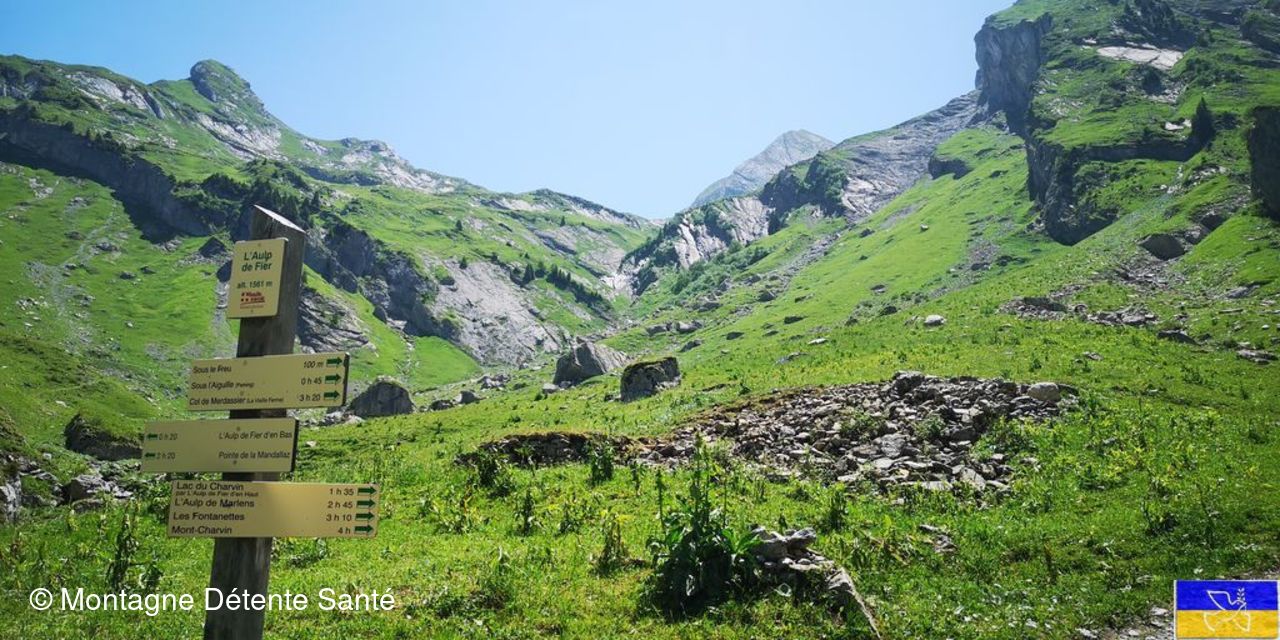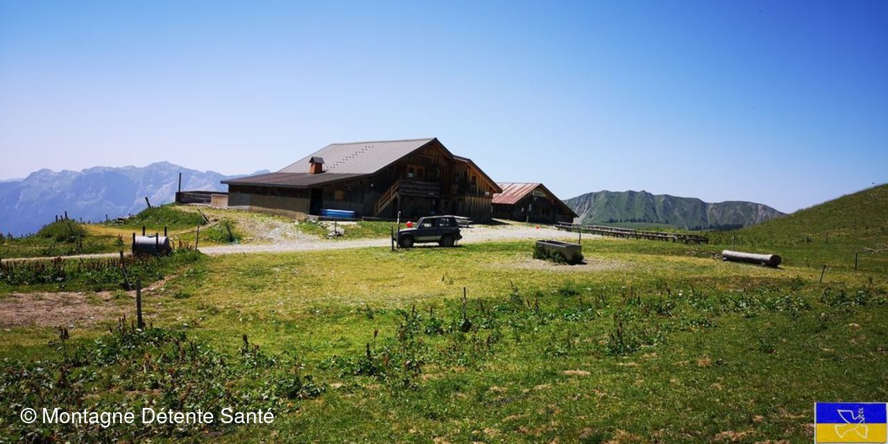 Et nous partons vers le chalet de l'Aulp du Fier d’en Haut. En route, une bonne place s’offre à nous pour le casse croûte. Le téléphone sonne. Tiens nos amis ont atteint le sommet et on se voit, enfin, on se devine, on est presque à 1,5 km les uns des autres.