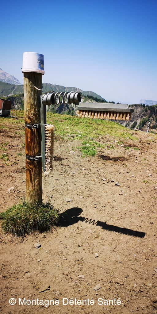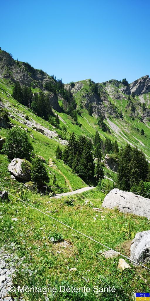 On reprend la route, un troupeau de chèvres est là mais ne prête pas trop d’attention à notre présence. Puis, le chemin du retour quitte la piste d’alpage et commence à grimper vers Sur le Freu. Le soleil cogne, l’ombre des arbres est la bienvenue. La pente se raidit et nous voilà bientôt au pied de la partie la plus délicate.