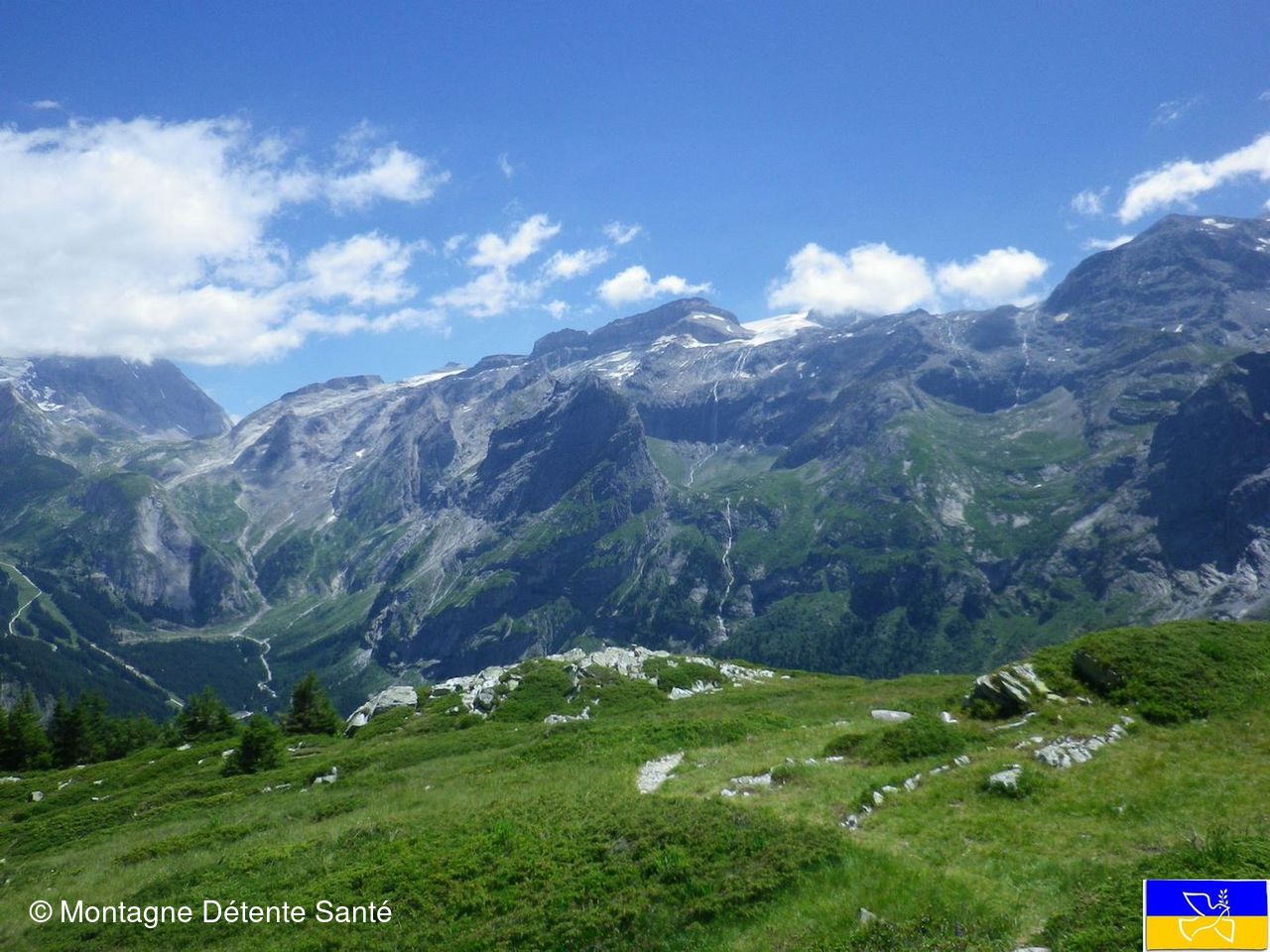 Le Grand Bec 3399 m, La Grande Casse 3855 m, de la pointe de la Réchasse 3212 m aux glaciers de la Vanoise jusqu’à celle de l’Echelle 3418 m, le Petit Mont-Blanc 2680 m, le rocher de Villeneuve 2196 m.