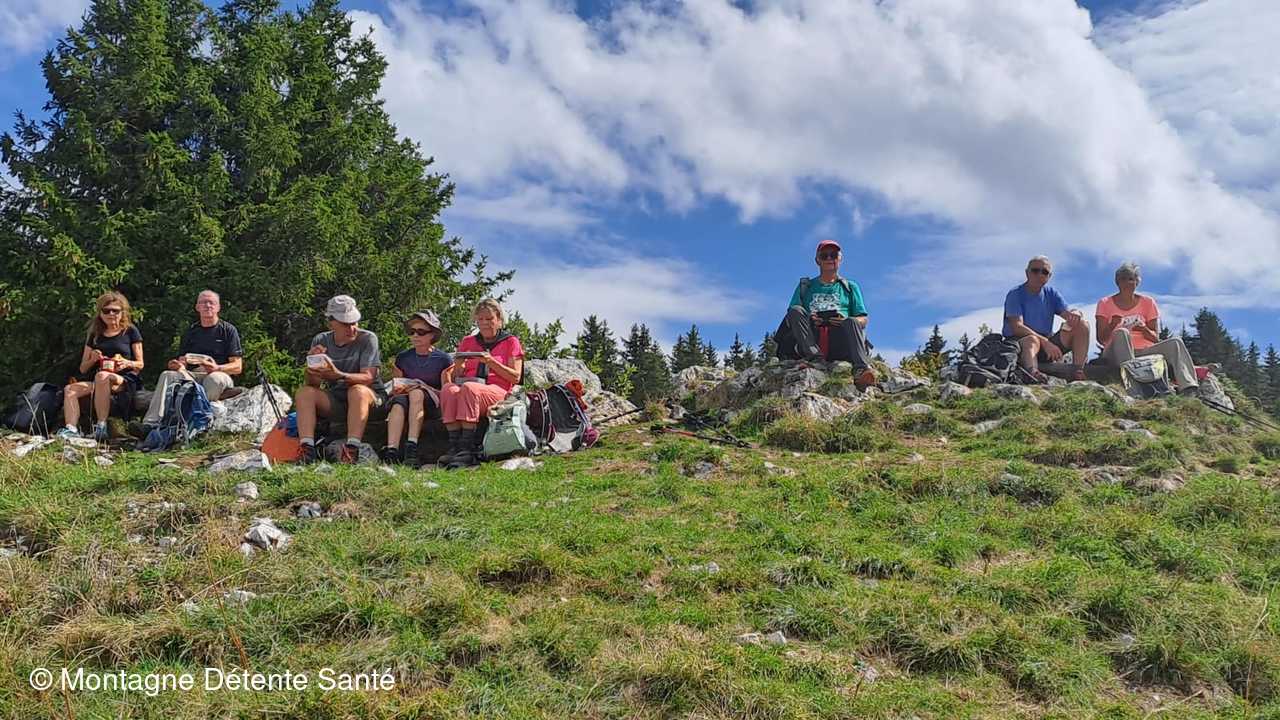 Après le pique-nique pris au soleil devant ce paysage grandiose, la descente un peu glissante oblige les moins aguerris à la prudence. Après les retrouvailles avec l'autre groupe, la fin de la randonnée se passe sans encombres.