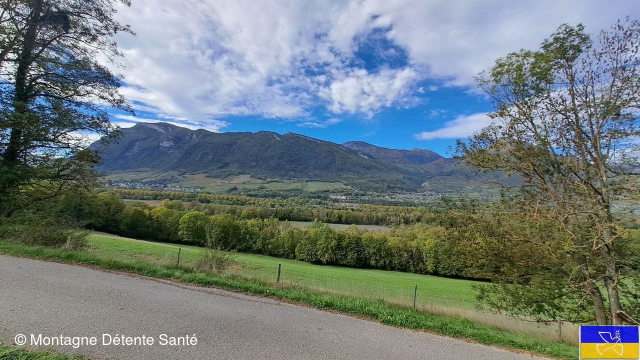 Au sommet nous faisons une pause boisson, photos et remettons les pads. Nous partons à gauche, passons devant le château de Touvet et allons jusqu'à "la Peysse". Au carrefour (producteur de fruits bios, confitures et glaces) nous remontons par la droite jusqu'à "le Mollard Génevier". Nous le quittons par la droite. Un chemin nous ramène tout droit à l'église de PLANAISE.