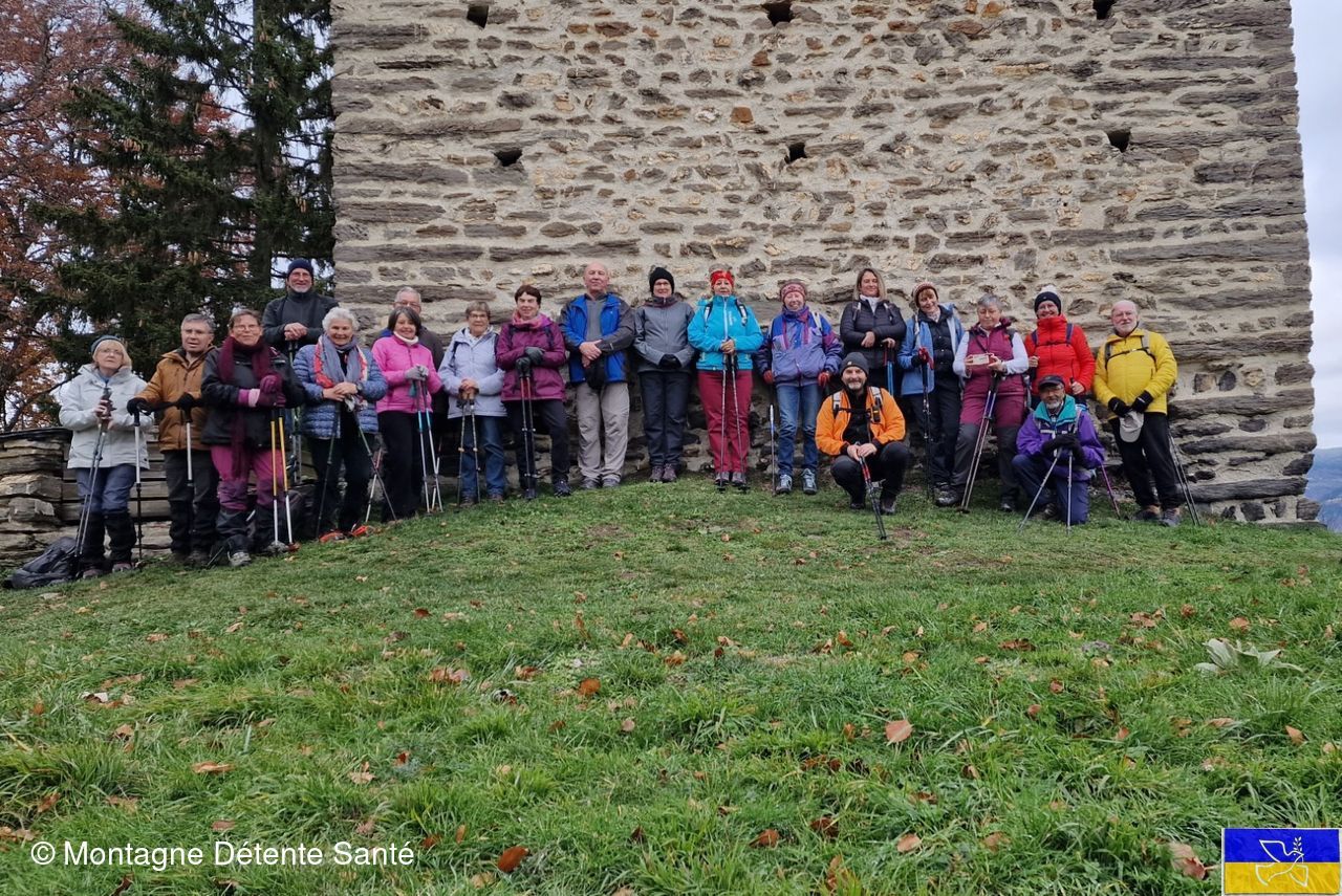 21 adhérents pour cette rando automnale,afin de découvrir,pour certains les vestiges féodaux datant du XIe siècle,sur la crête de Montraillant.