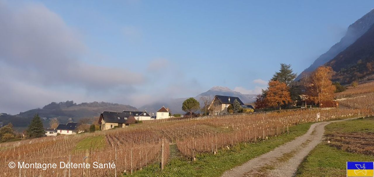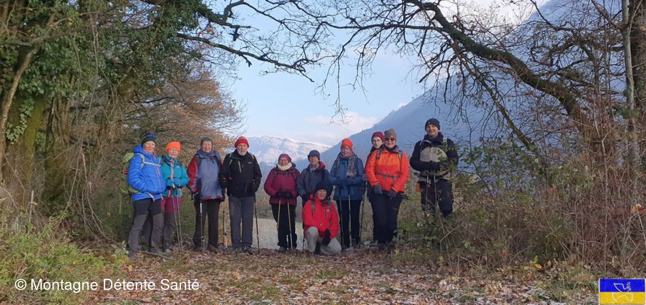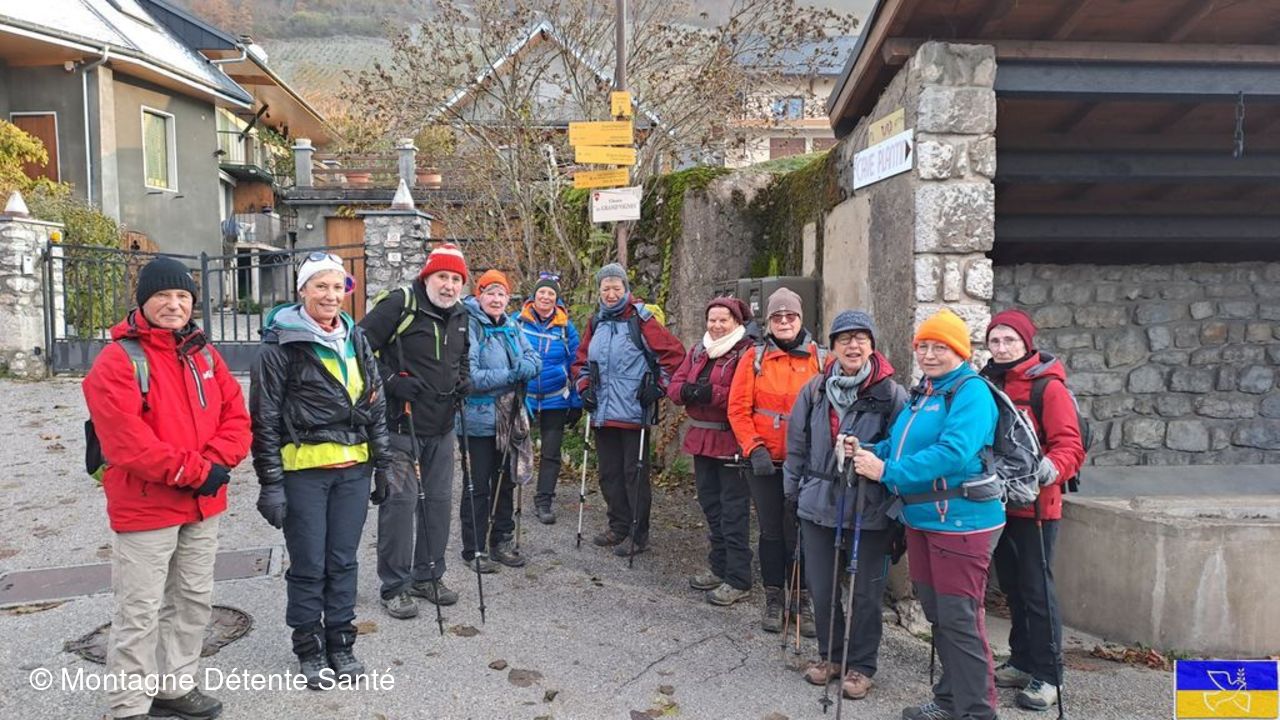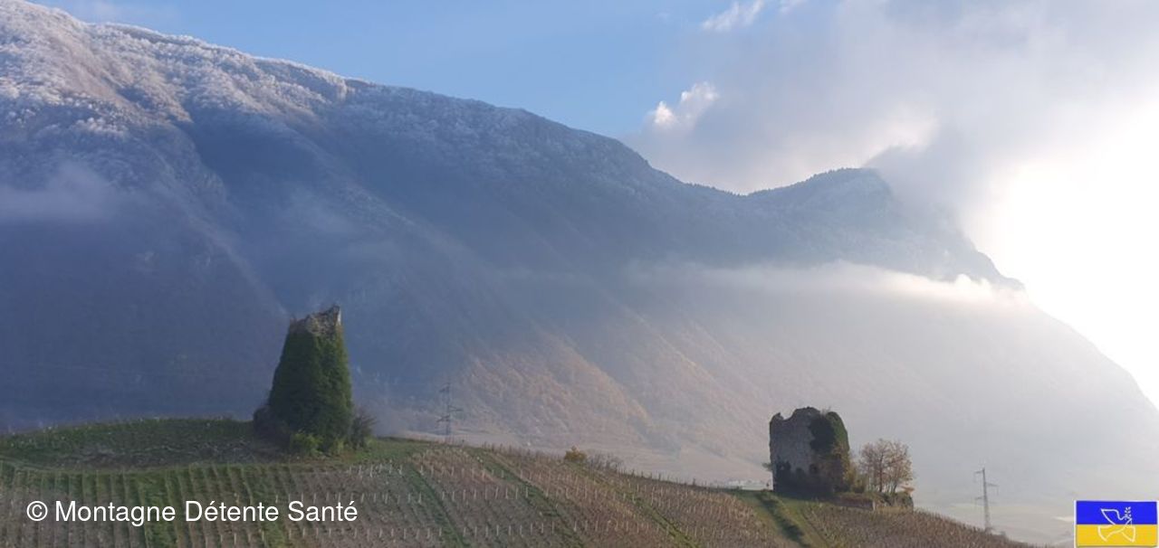 Froid hivernal au départ de Montmélian. Nous nous sommes réchauffés en marchant mais ne nous sommes guère déshabillés en chemin. Parcours en hauteur dans les vignes de Chignin, Tormery, le Viviers, Montlevin avant "l'assaut" du Mont Ronjou. Le soleil est timide mais présent et, même, il nous réchauffe un peu. Photo au sommet du Mont Ronjou avant de rejoindre les tours de Chignin joliment nappées de brume. Descente tranquille dans la vallée et retour à nos voitures à 12h45. nous avons ainsi pu rentrer chez nous déjeuner au chaud. Participants heureux d'être là ensemble, ambiance sympathique.