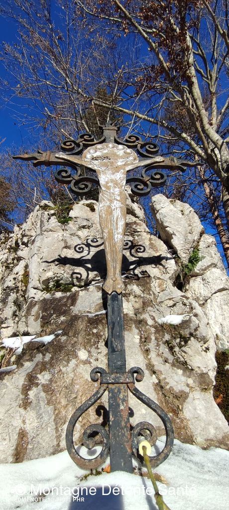 Montée douce et régulière sur 300 m D+ qui amène sur un plateau du même nom et de là au belvédère. Un vue magnifique s'offre alors à nous: du Moucherotte à la Moucherolle avec la Chartreuse et même les Grands Moulins là bas dans le lontain. Environ 5cm de neige complétaient le décor et même un petit bizelet nous donnait l'impression que l'hiver était enfin là.